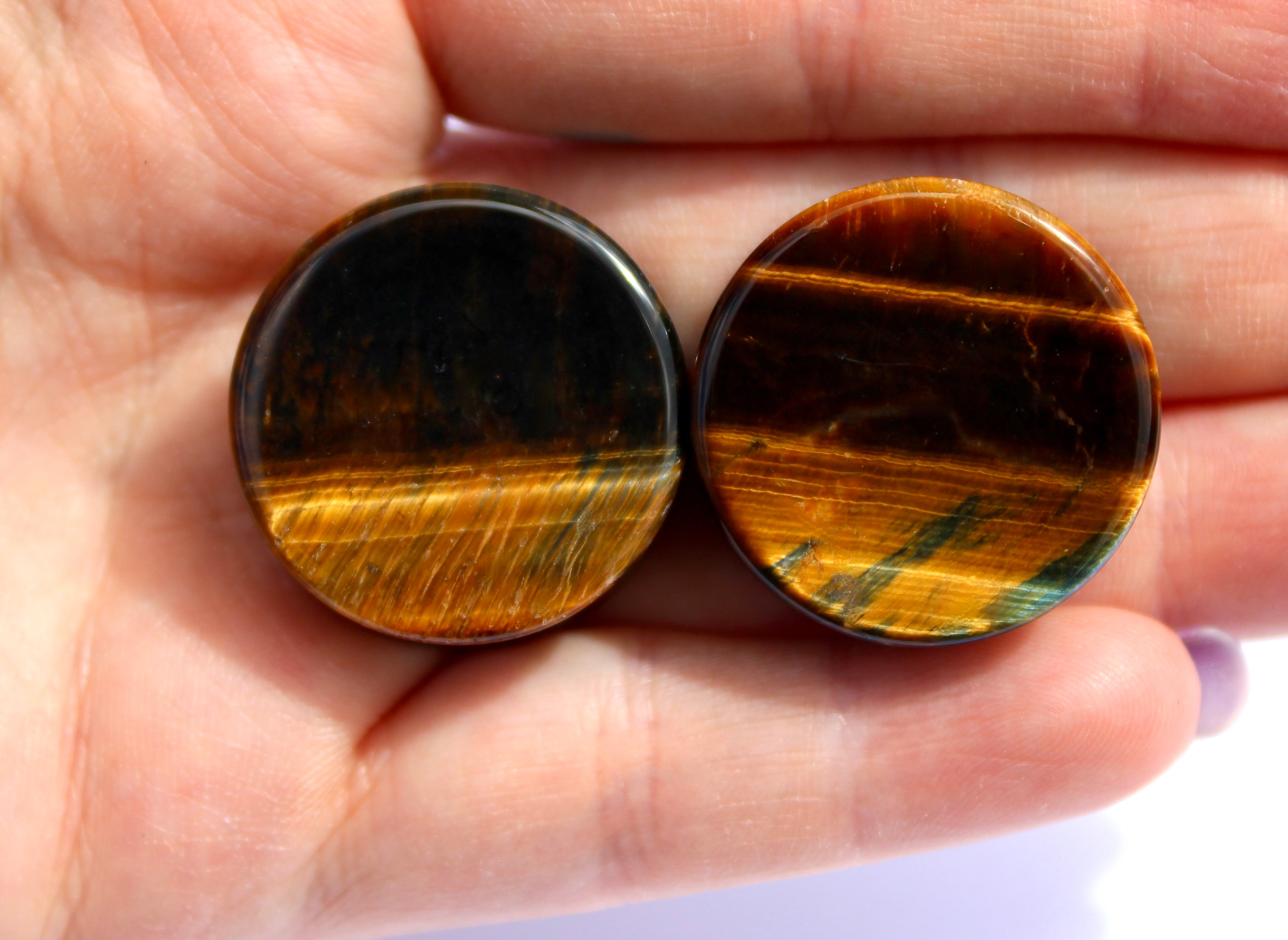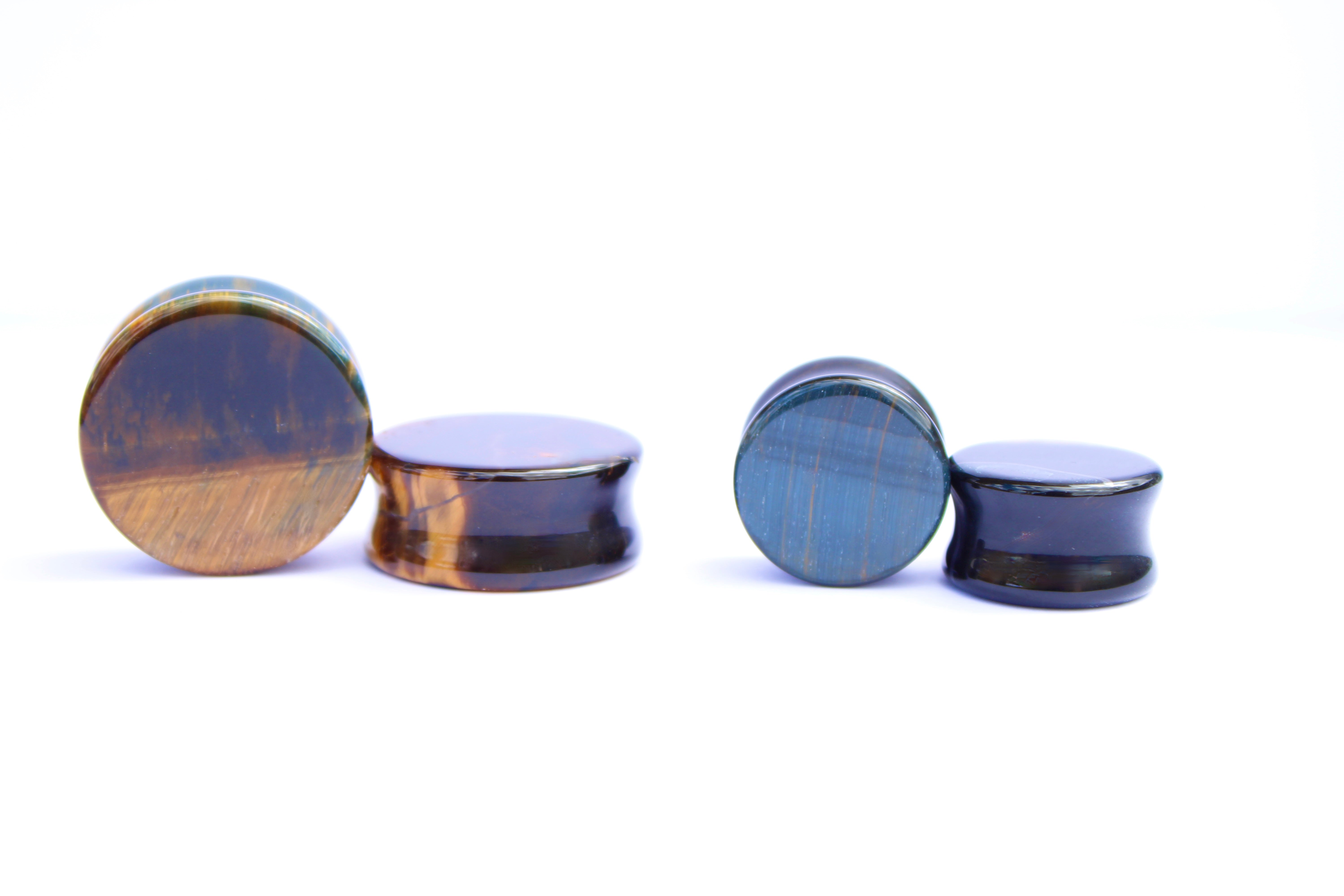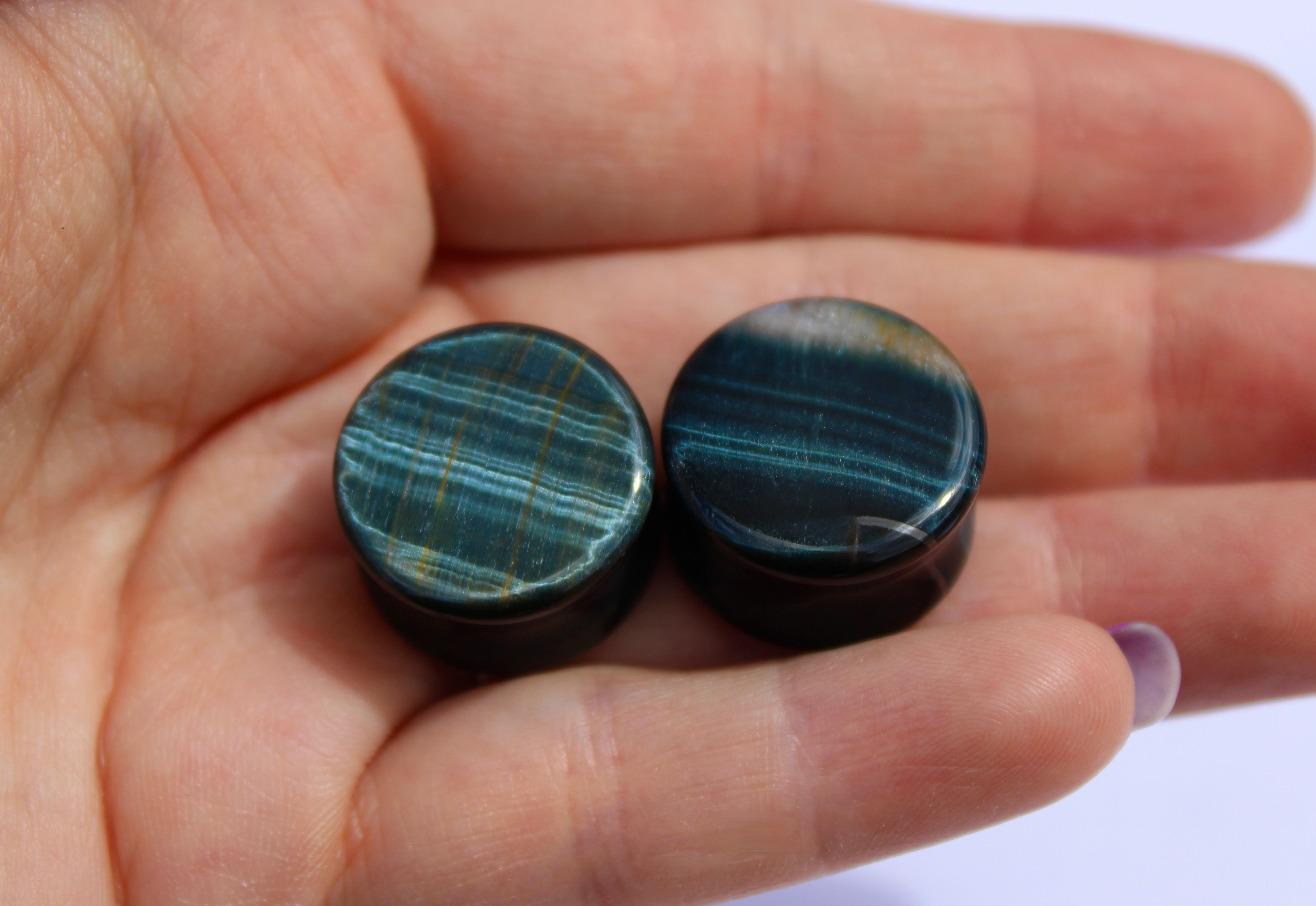 Blue Tiger Eye Plugs – Polished Falcon’s Eye Stone Gauges (Pair) 3mm-32m