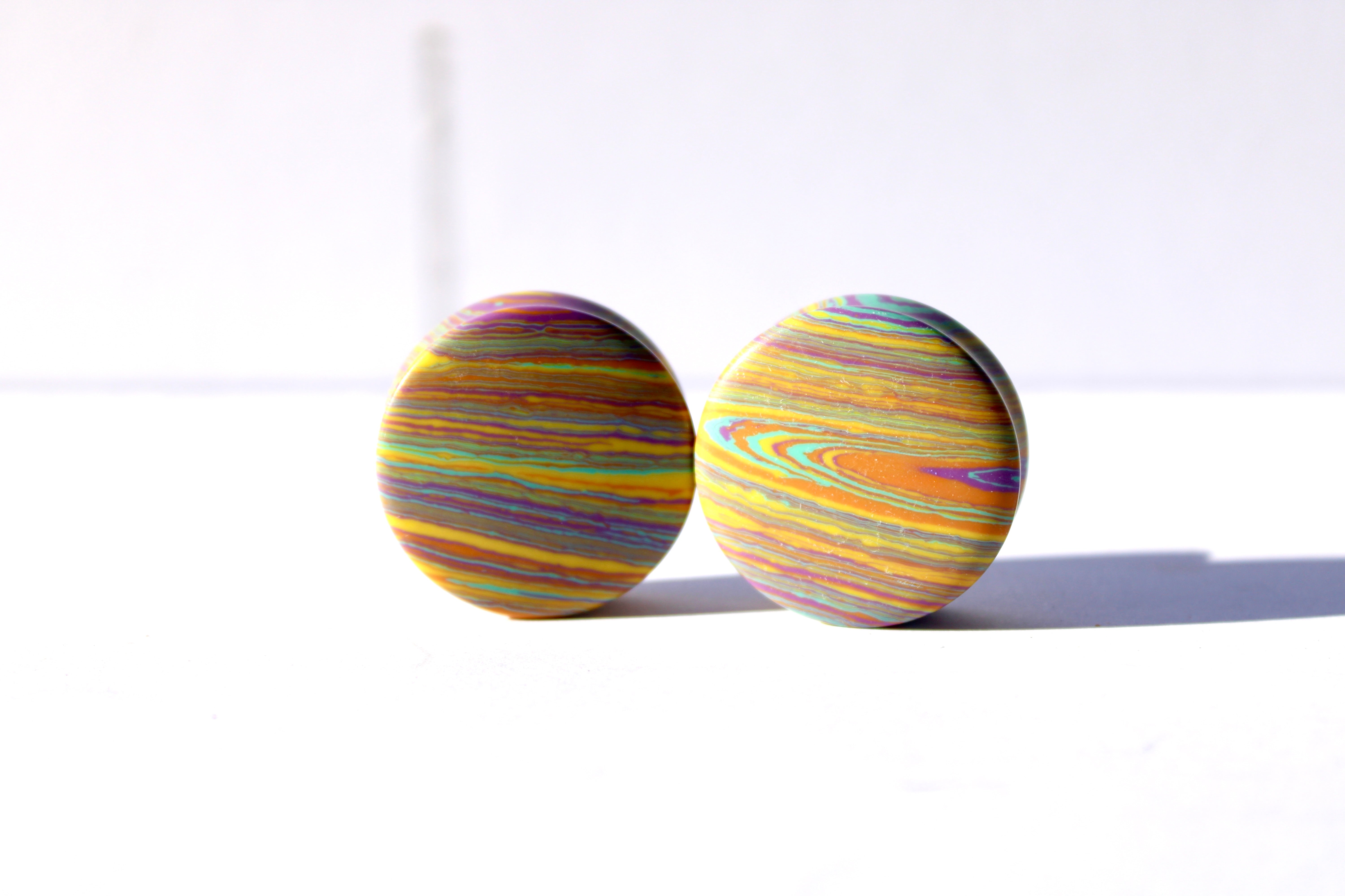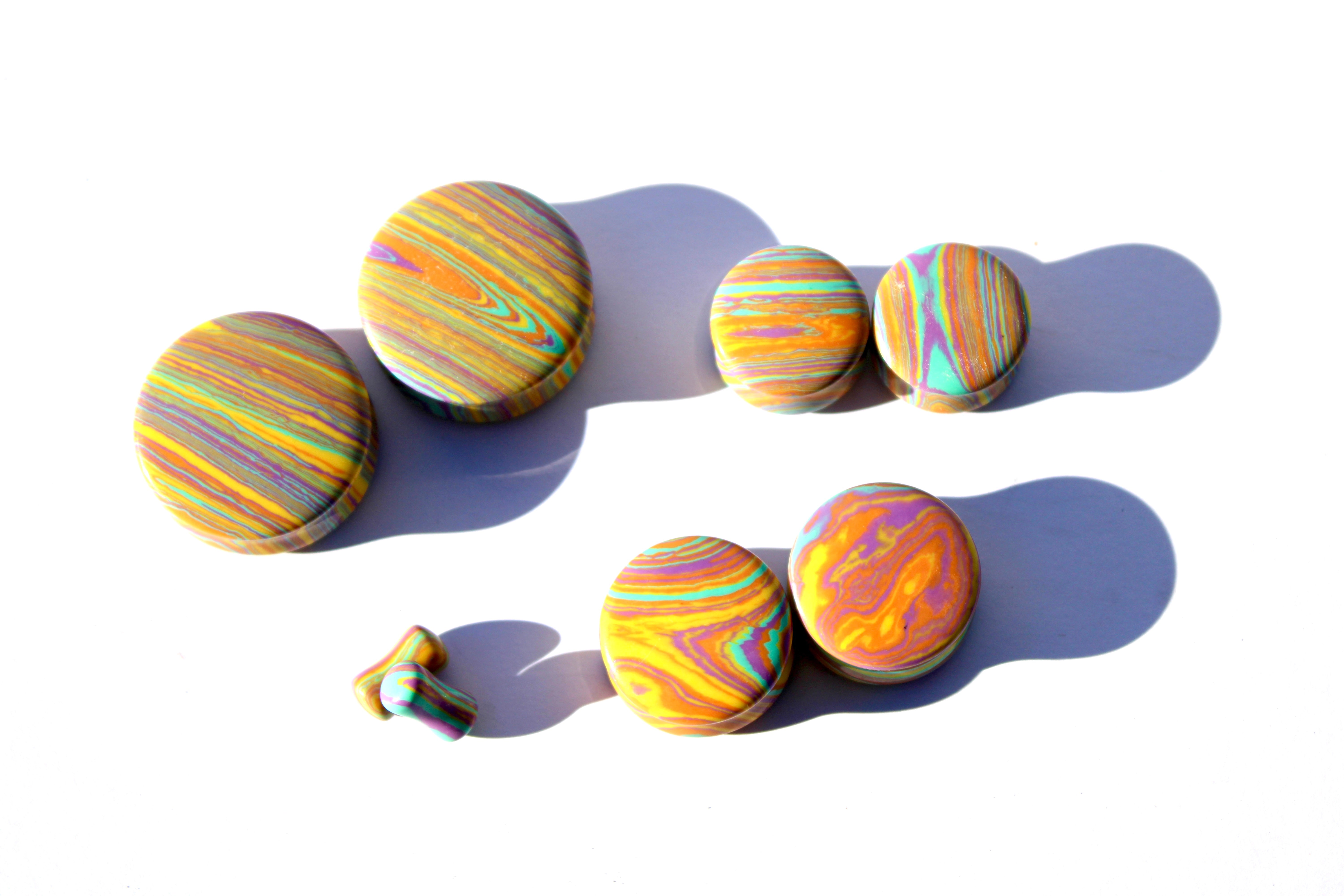 Calsilica Rainbow Tie Dye Double Flare Plugs - Rainbow Gauges 3mm-30mm