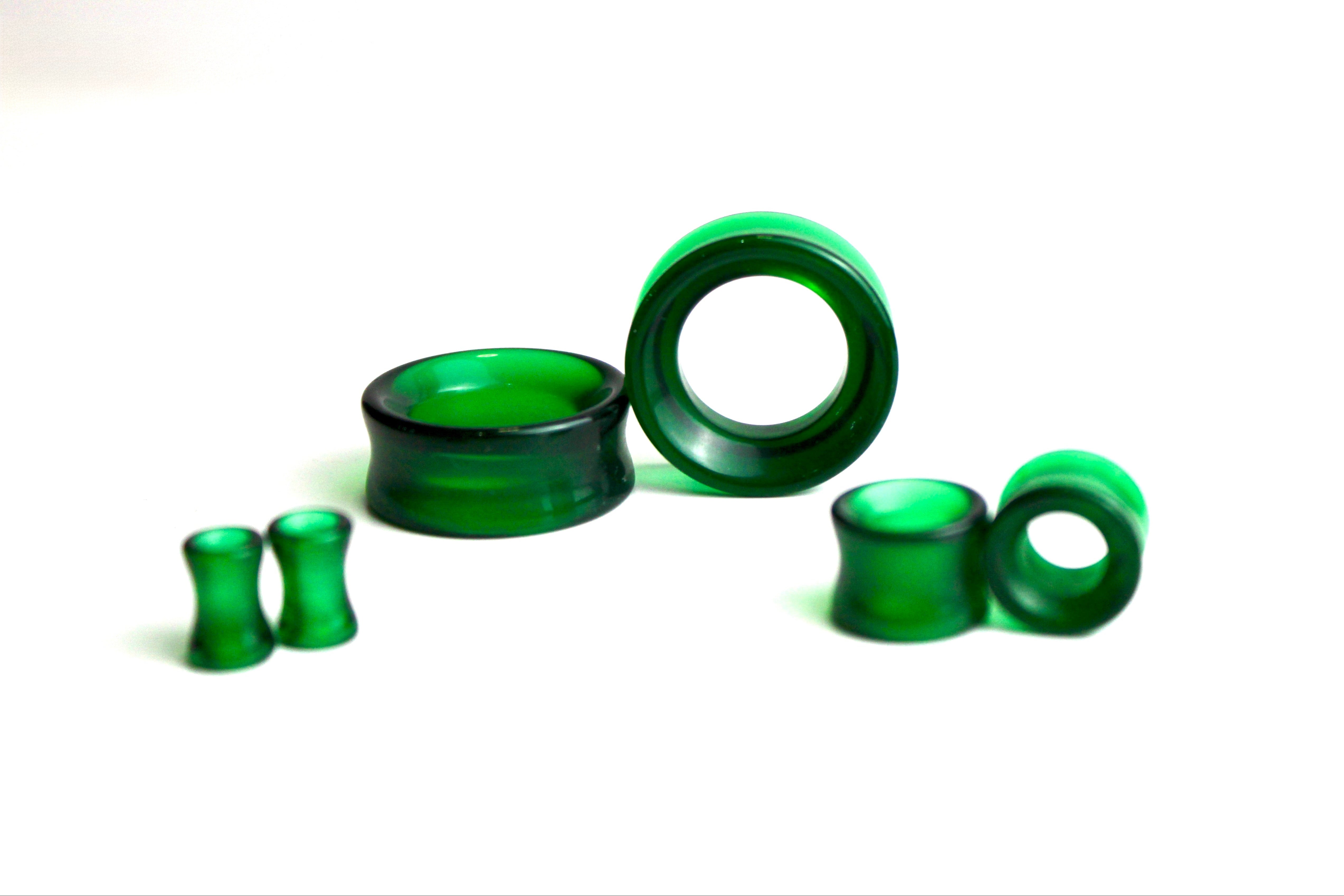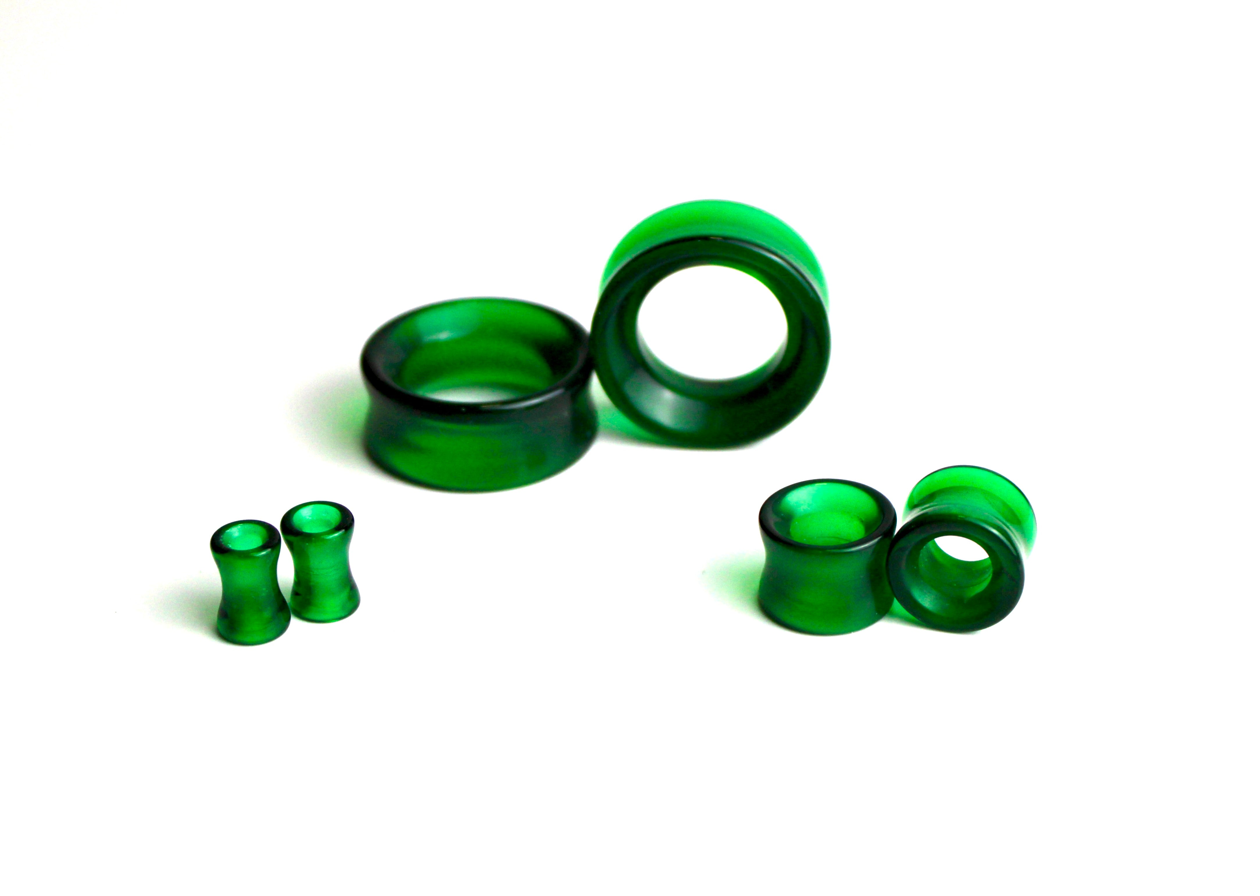 Dark Green Glass Tunnel Plugs – 6mm to 47mm Pair of Double Flare Eyelets