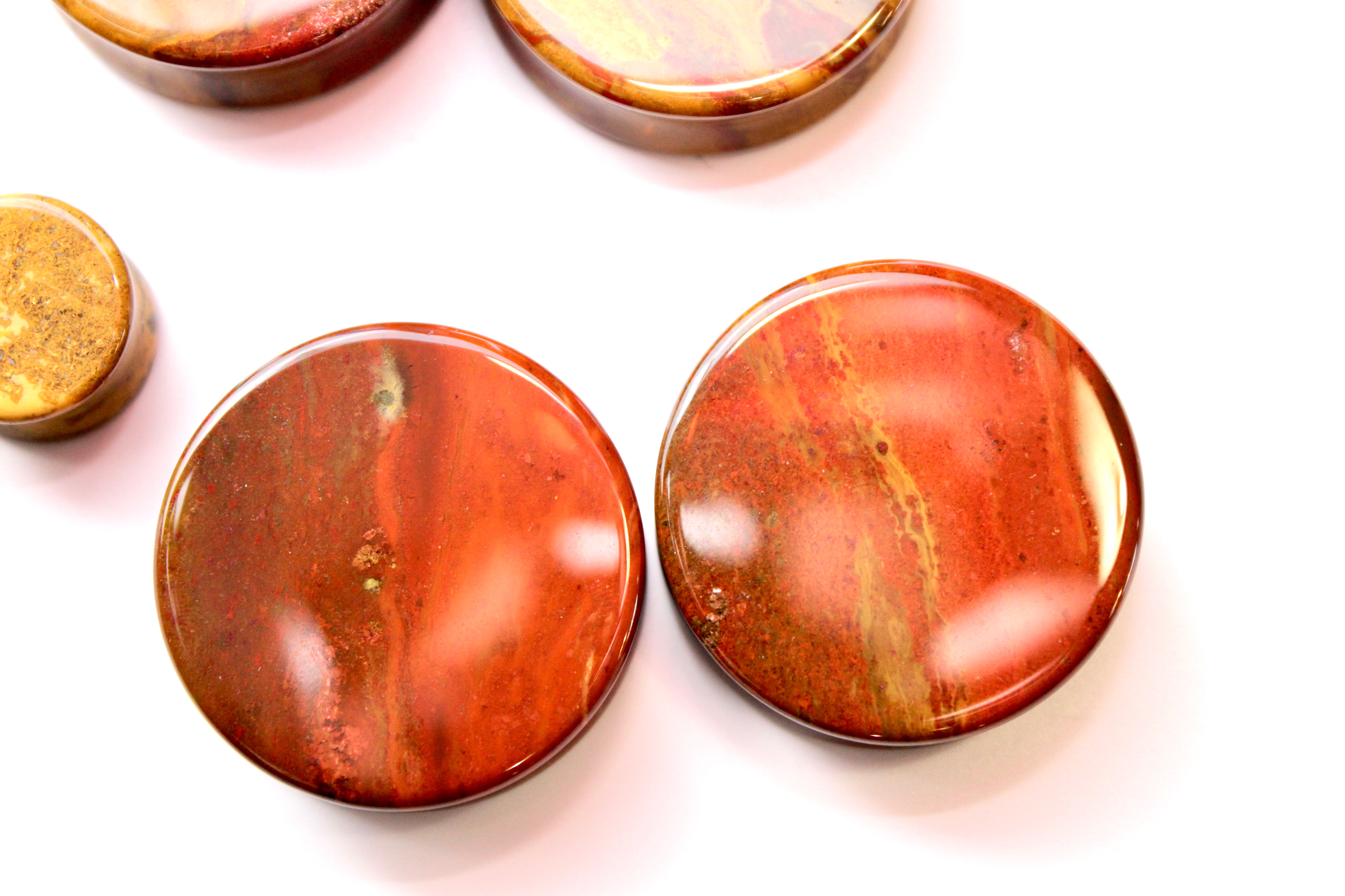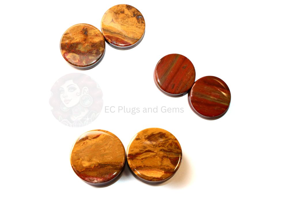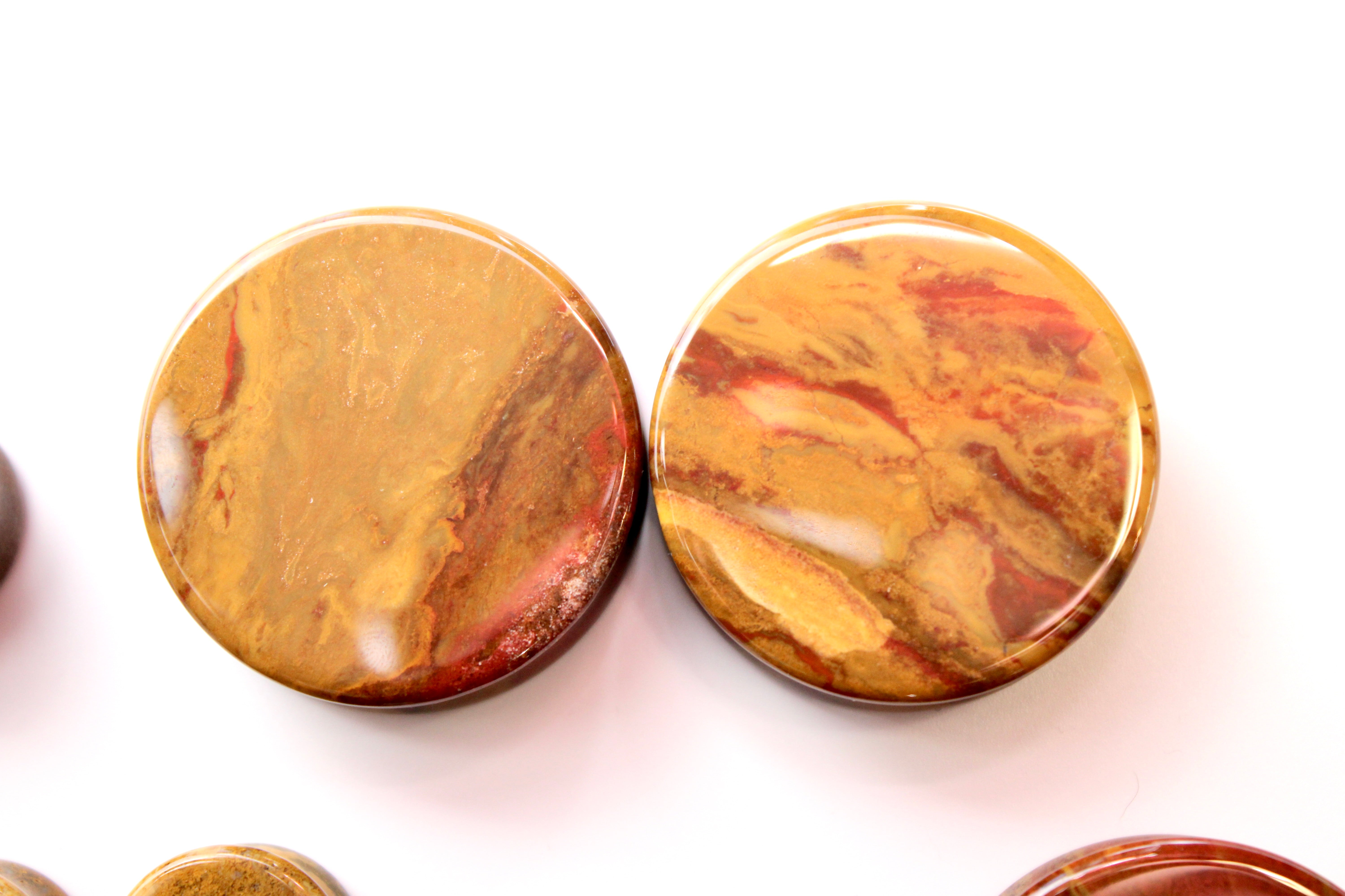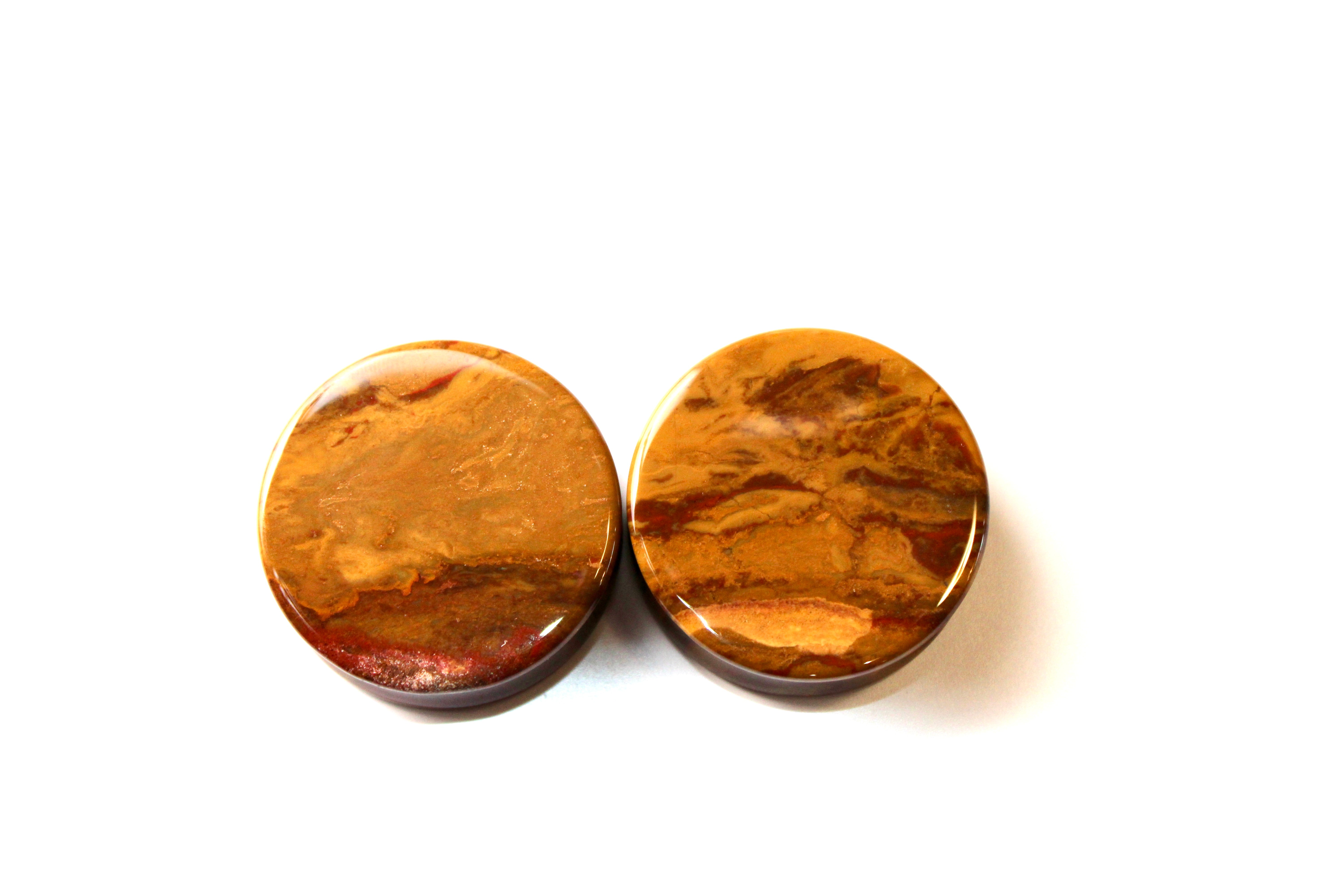 Desert Ocean Jasper Double Flare Plugs – You Pick Pair of Yellow and Red Natural Stone Gauges 3mm-35mm