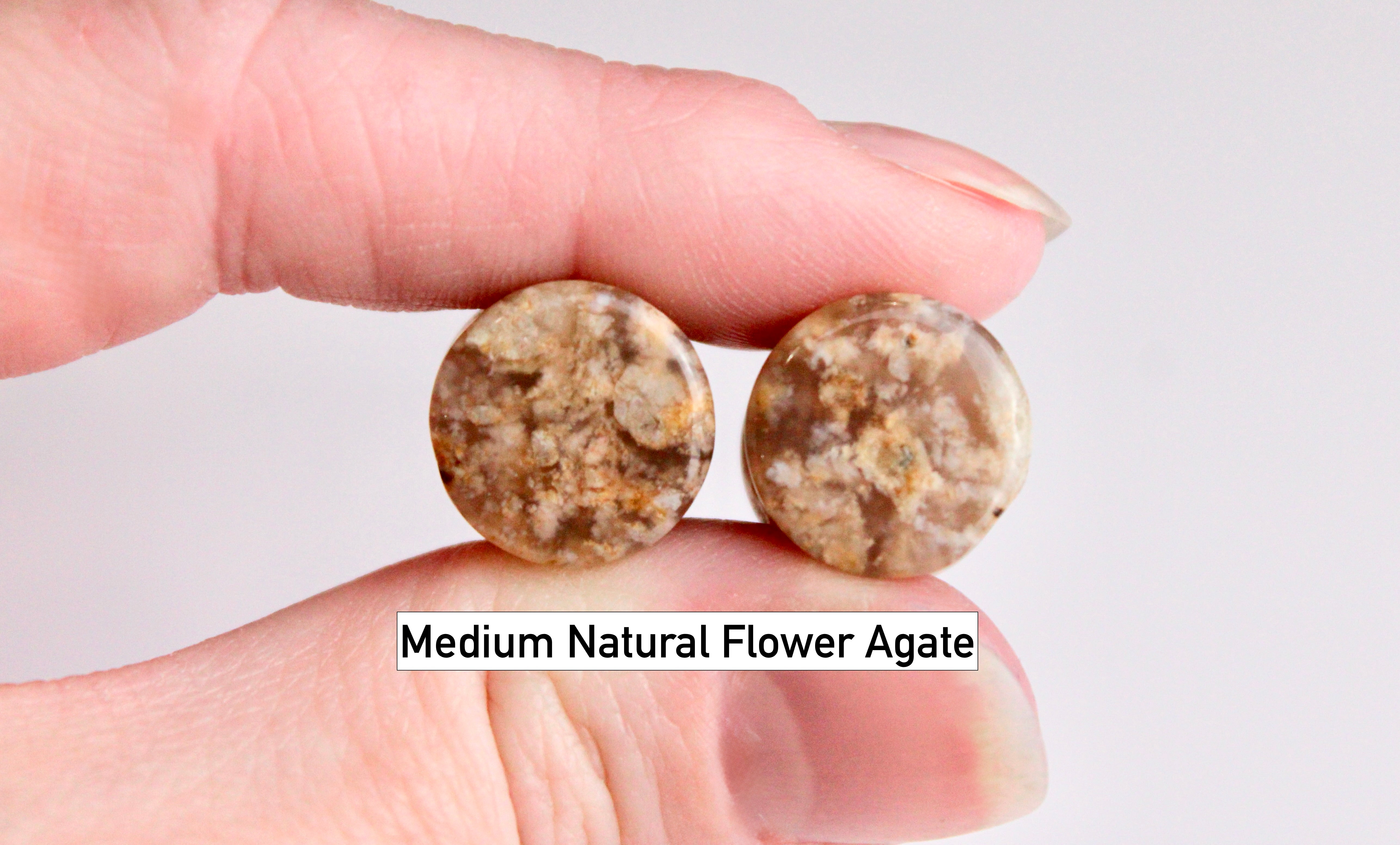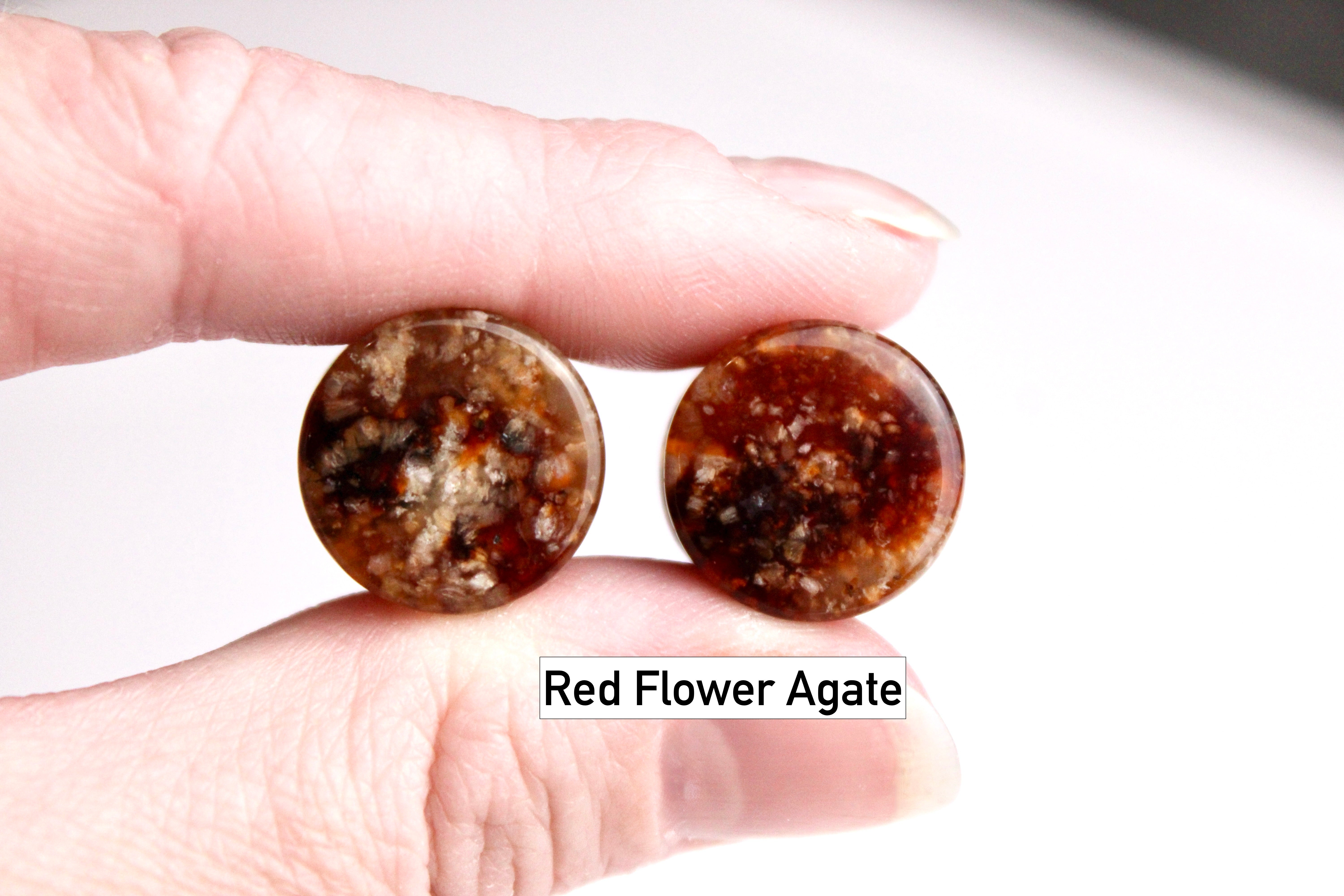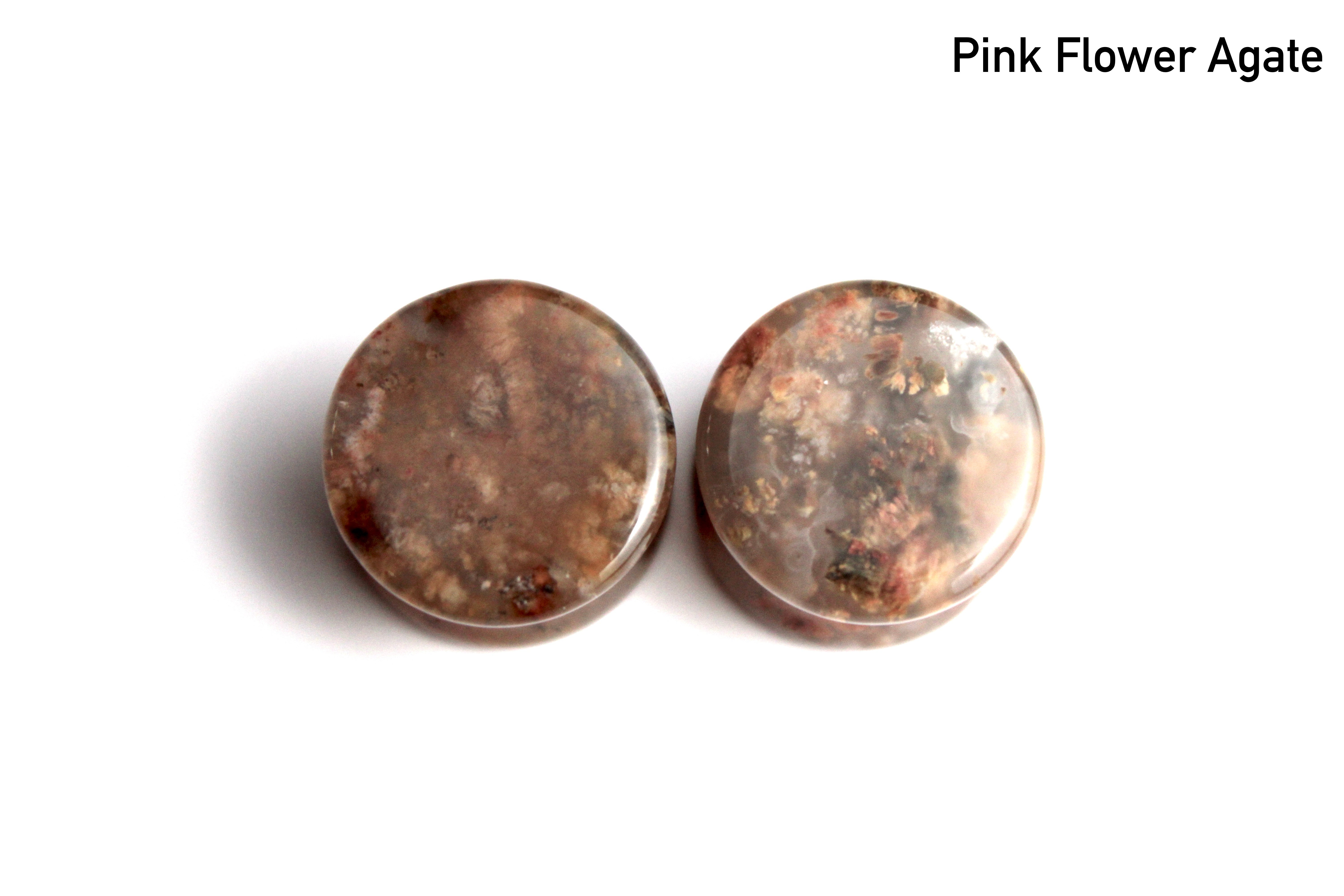 Flower Agate Double Flare Plugs – Rare Natural Floral Stone Gauges in Pink, Red, and Neutral Tones