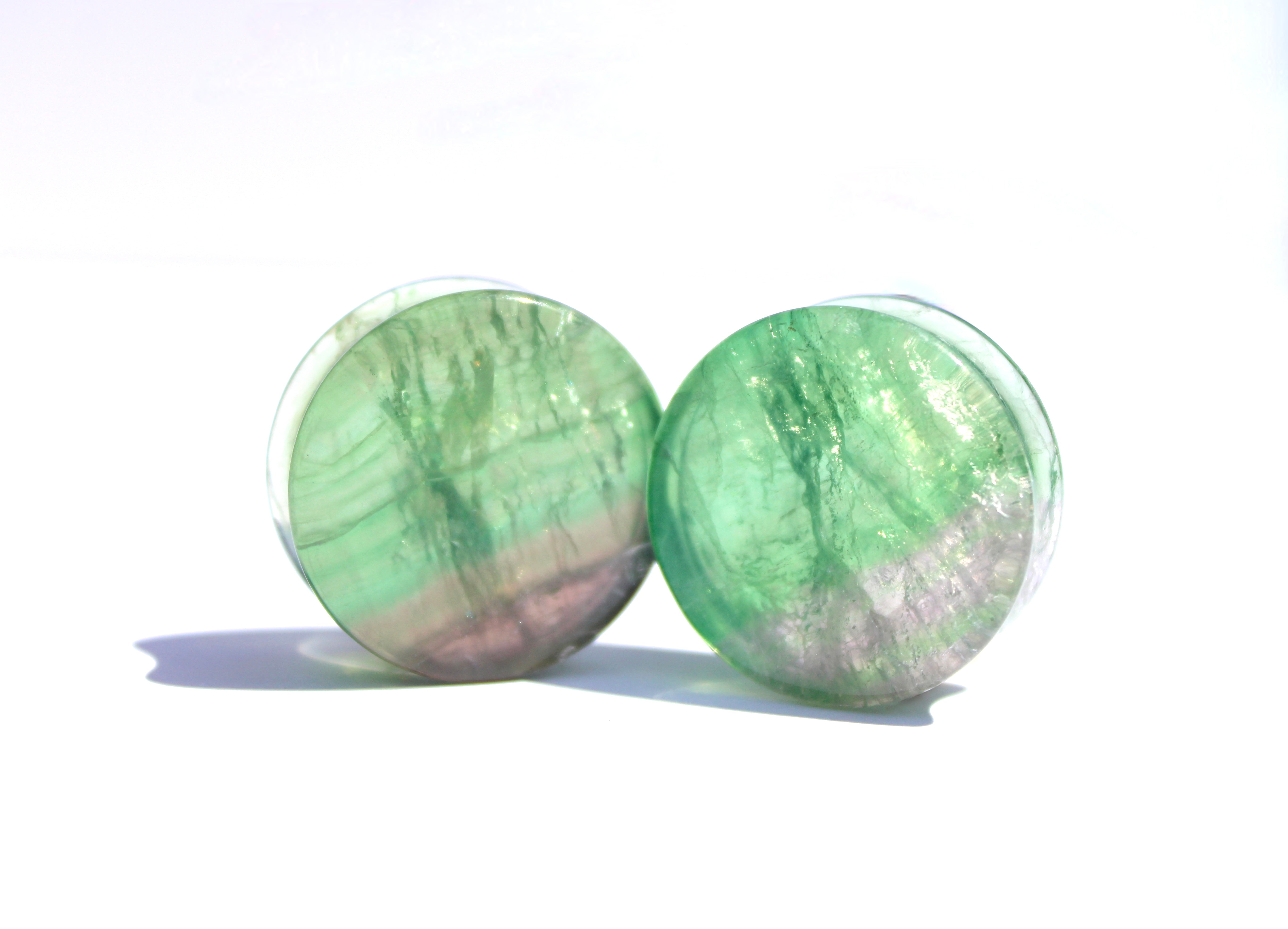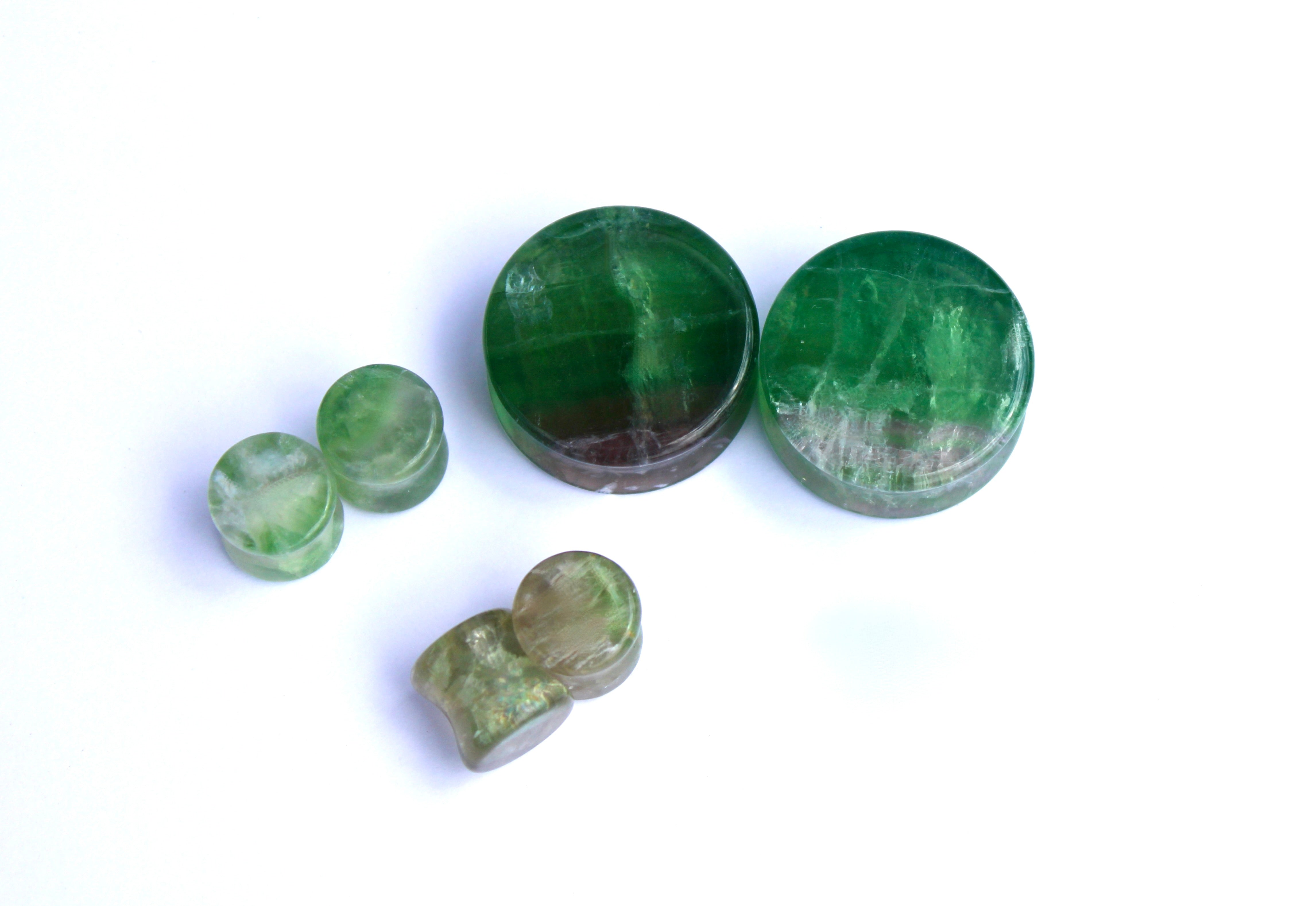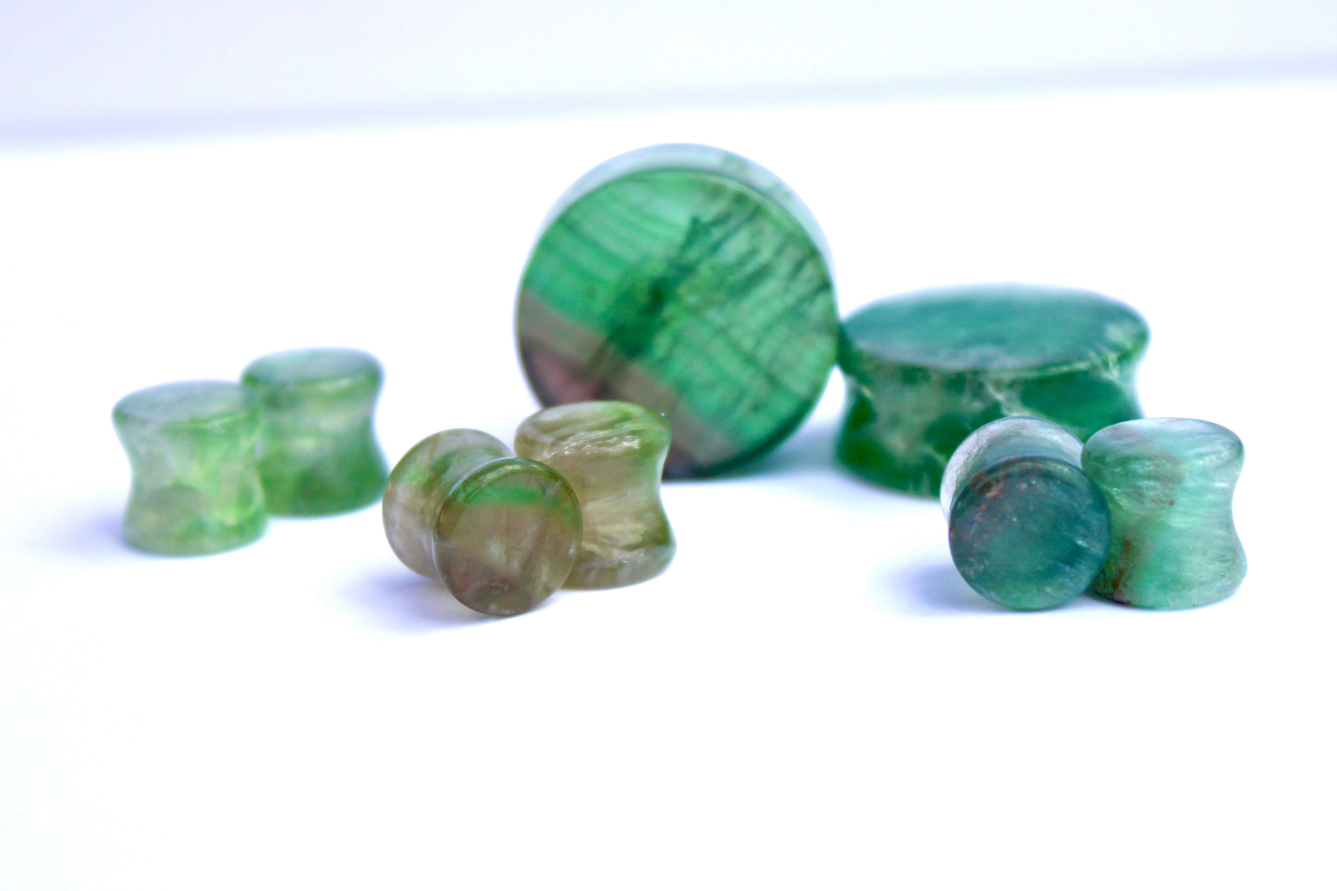 Green Fluorite Double Flare Stone Plugs – Natural Crystal Gauges Pair