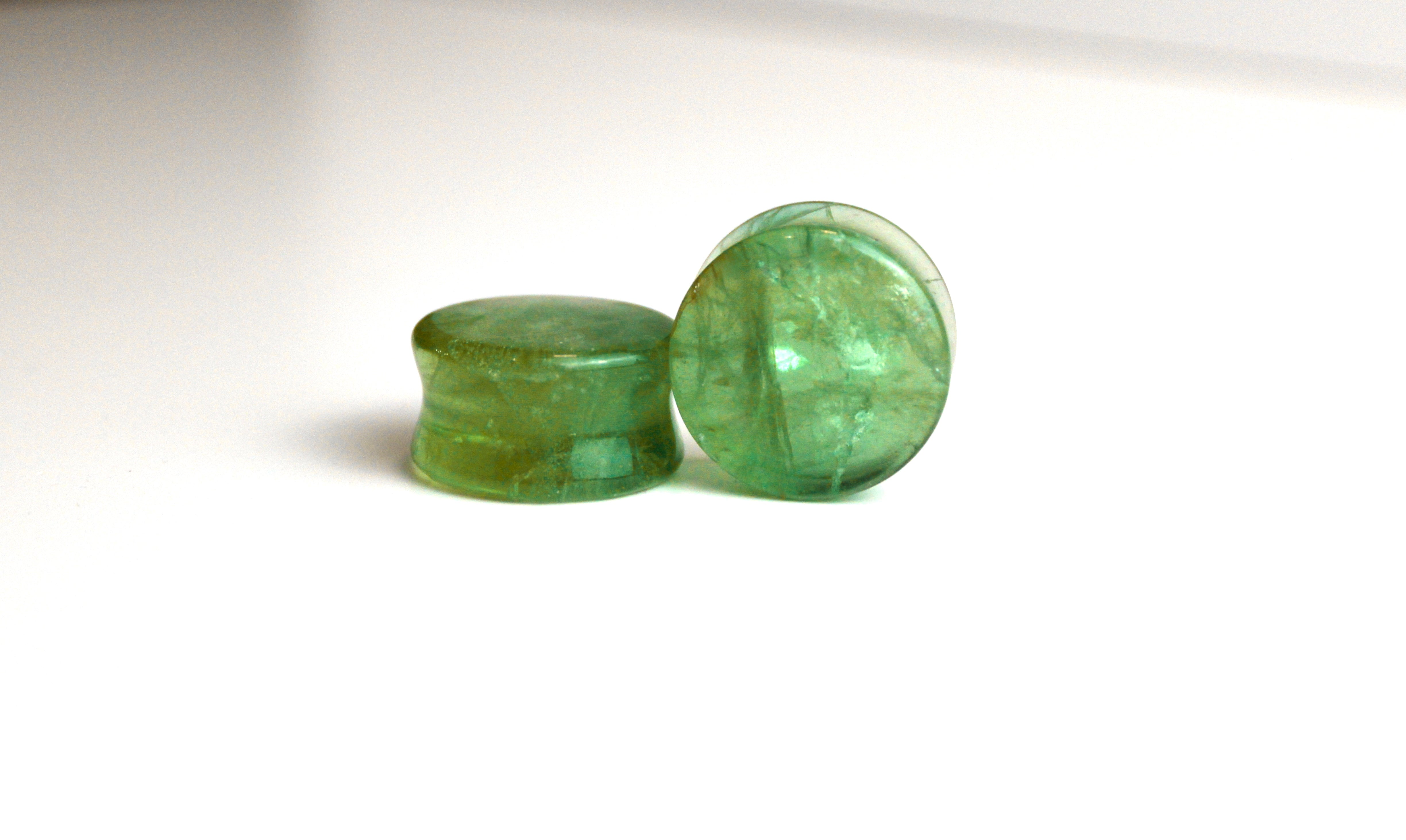Green Fluorite Double Flare Stone Plugs – Natural Crystal Gauges Pair 3mm-32mm
