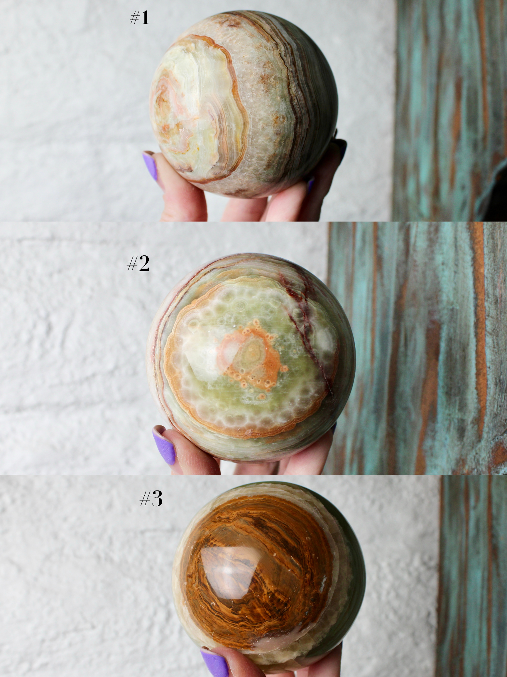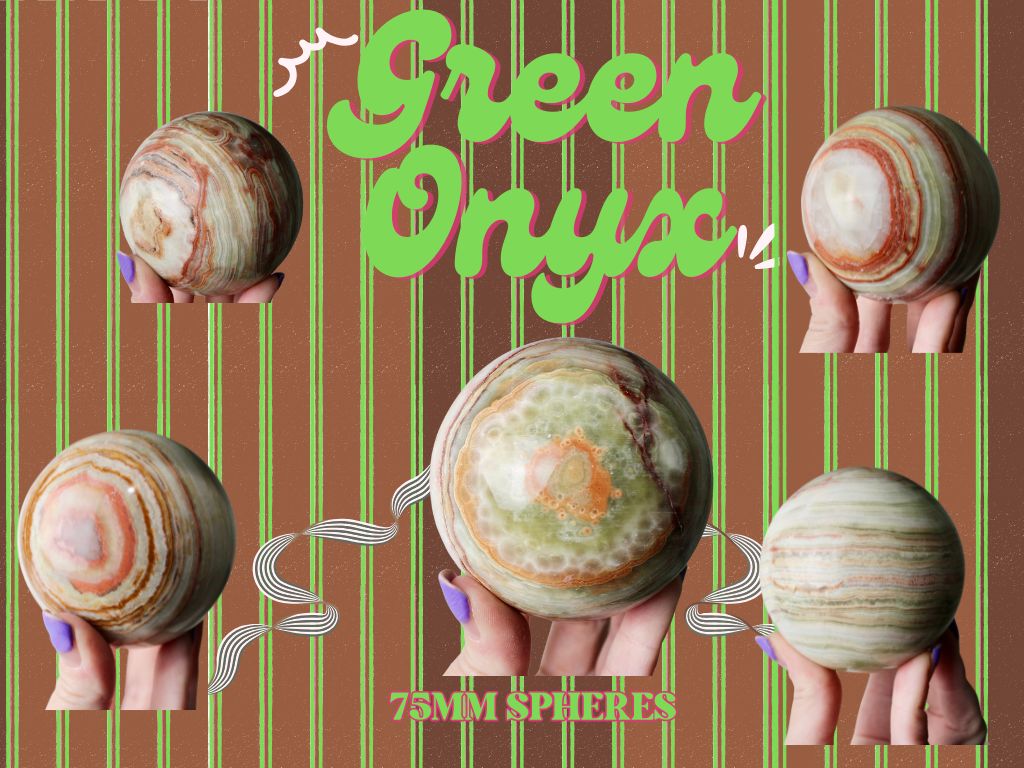 Green Onyx Sphere 75mm LARGE –Pick Your Exact Sphere, Natural Stone Decorative Sphere, Polished Green and Brown Onyx Ball for Display, Home or Office Décor