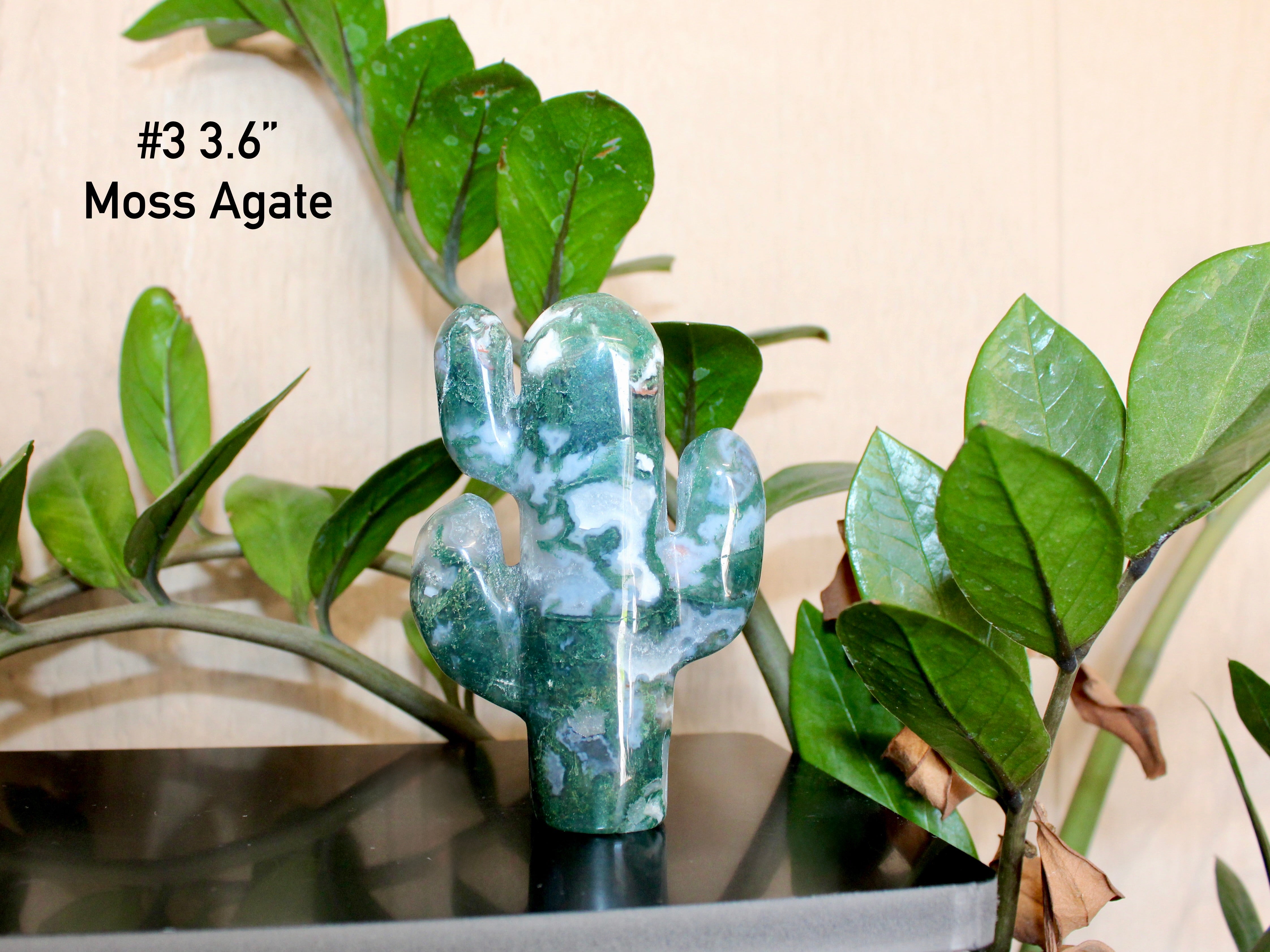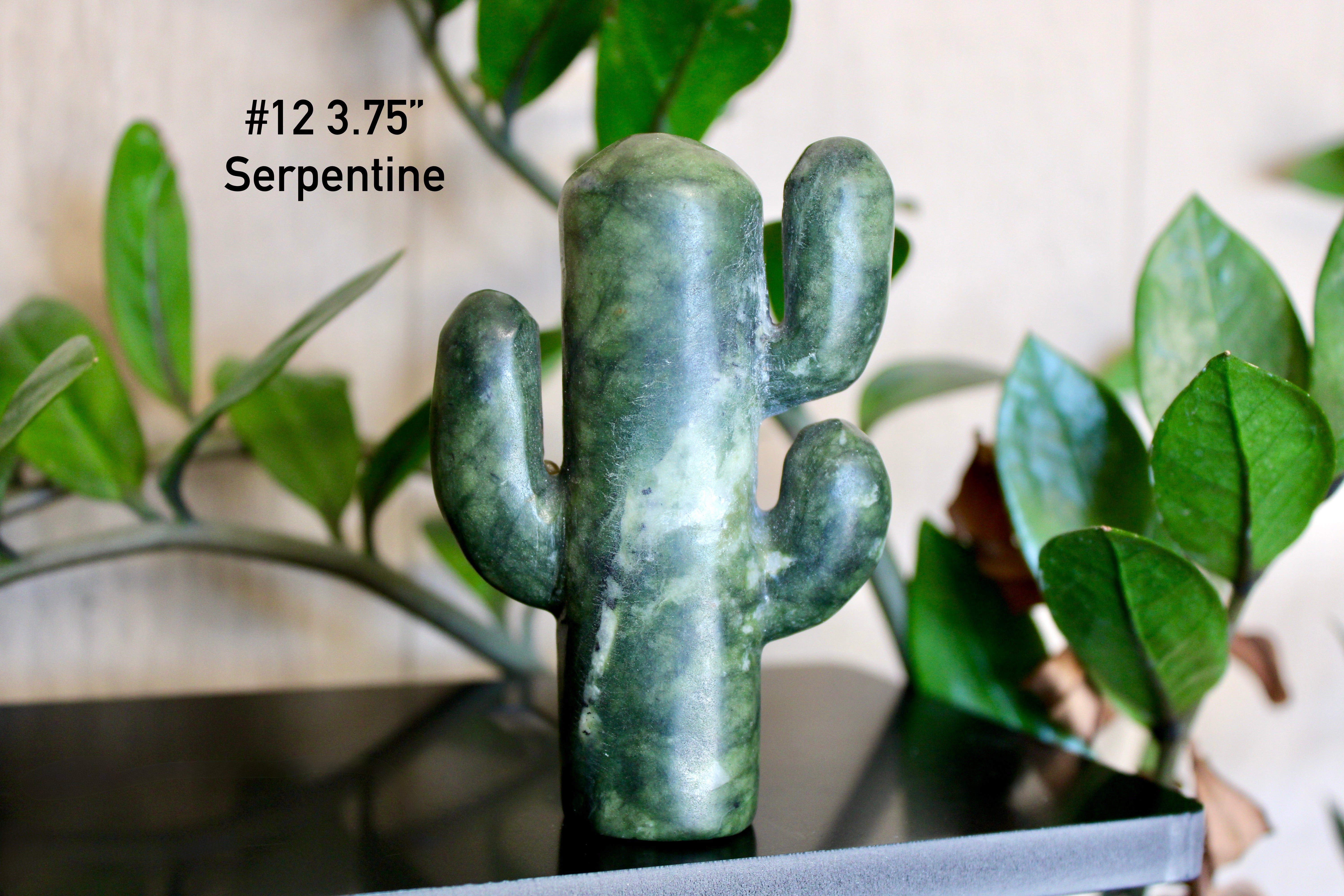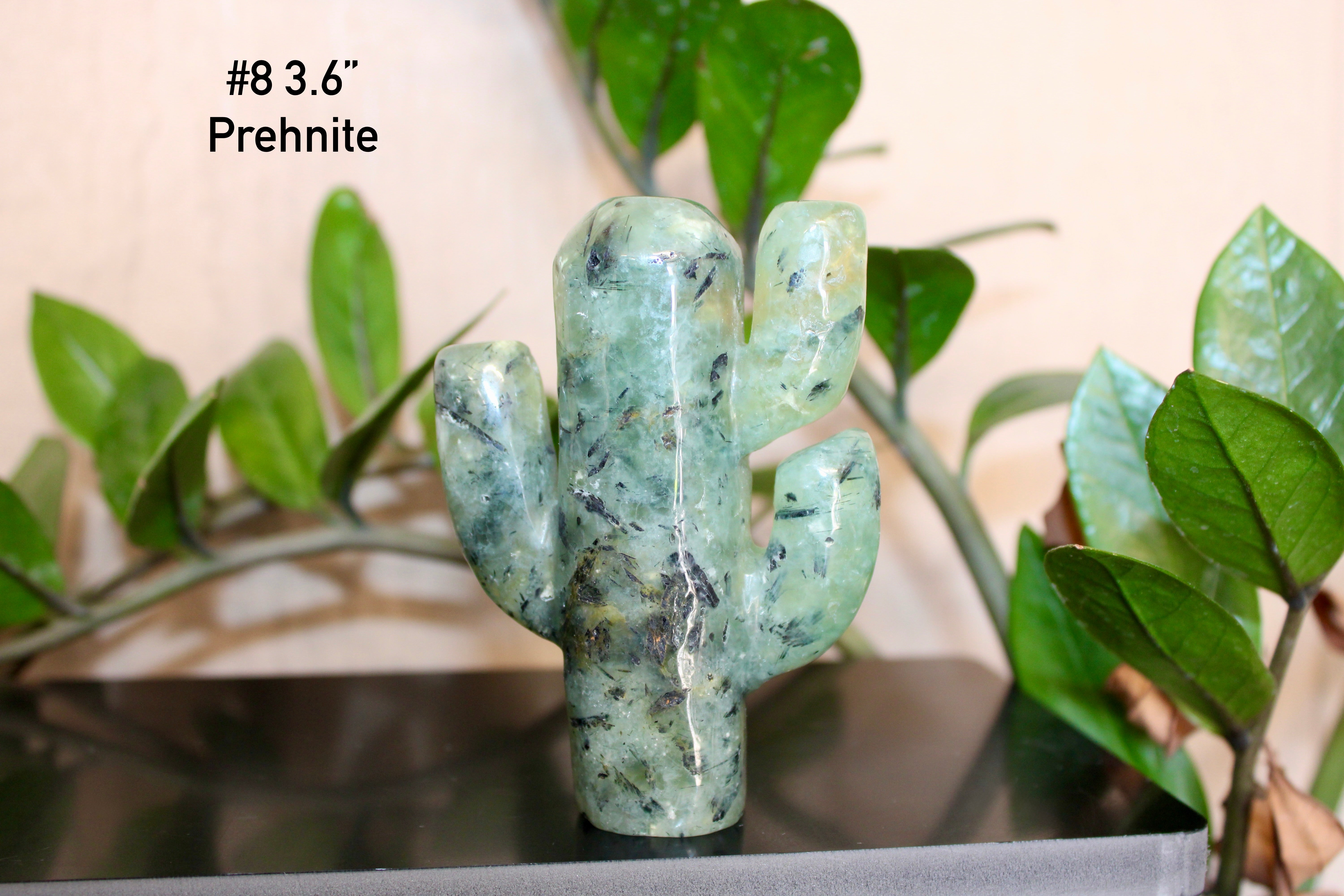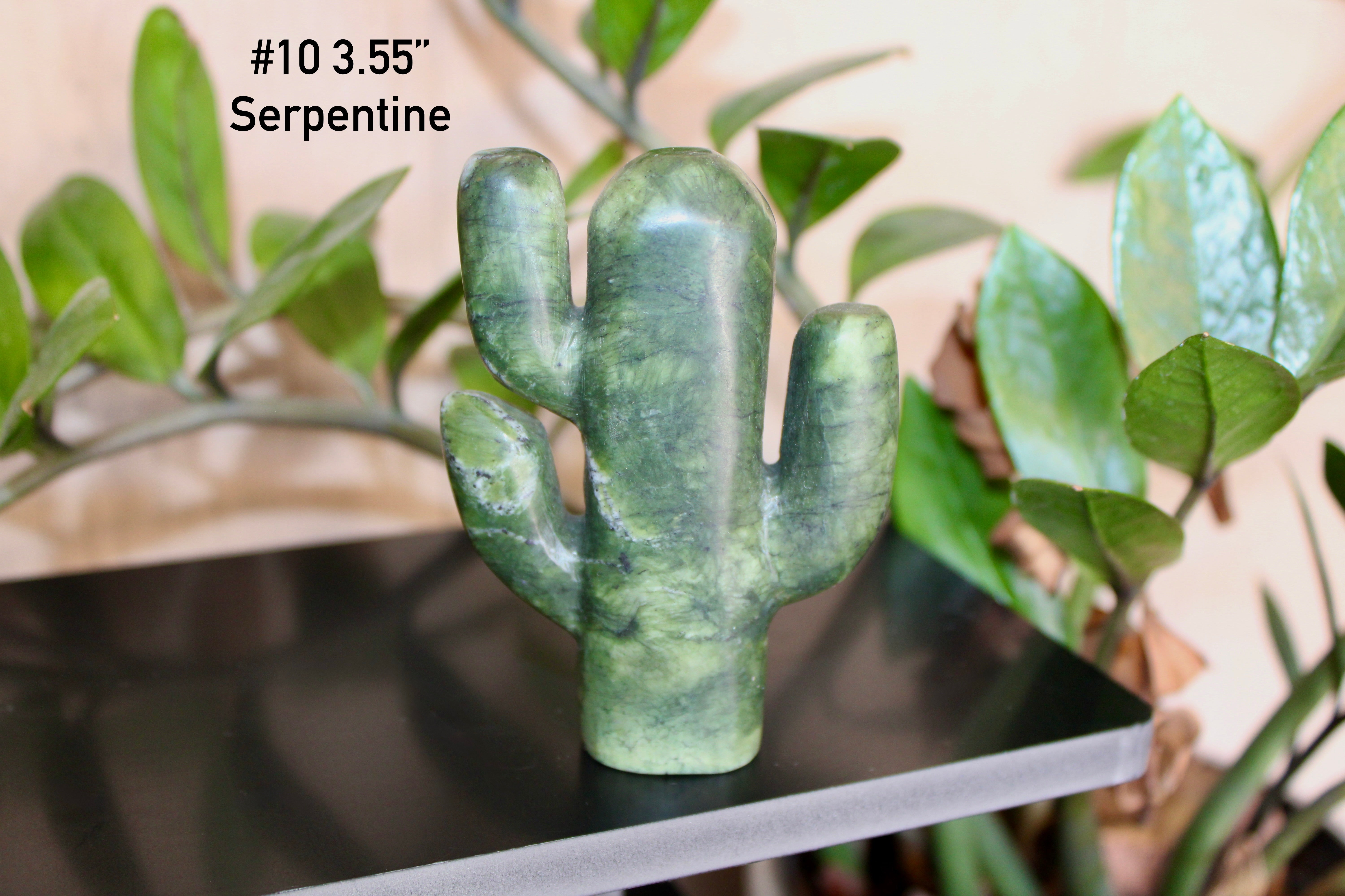 Green Stone Cactus Carvings – Moss Agate, Prehnite, and Serpentine Polished Stone Cactus Sculptures, You Pick Your Exact Carving