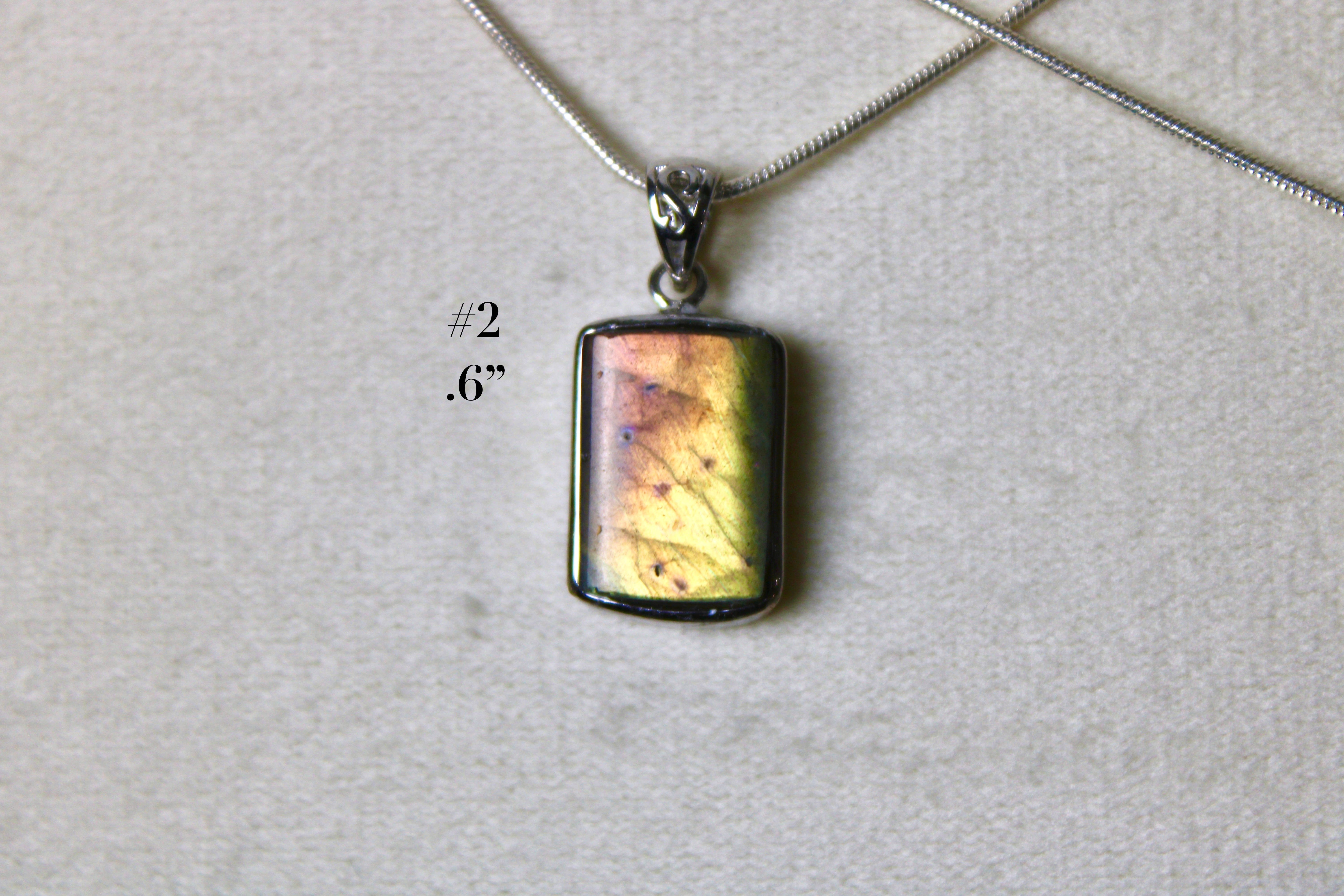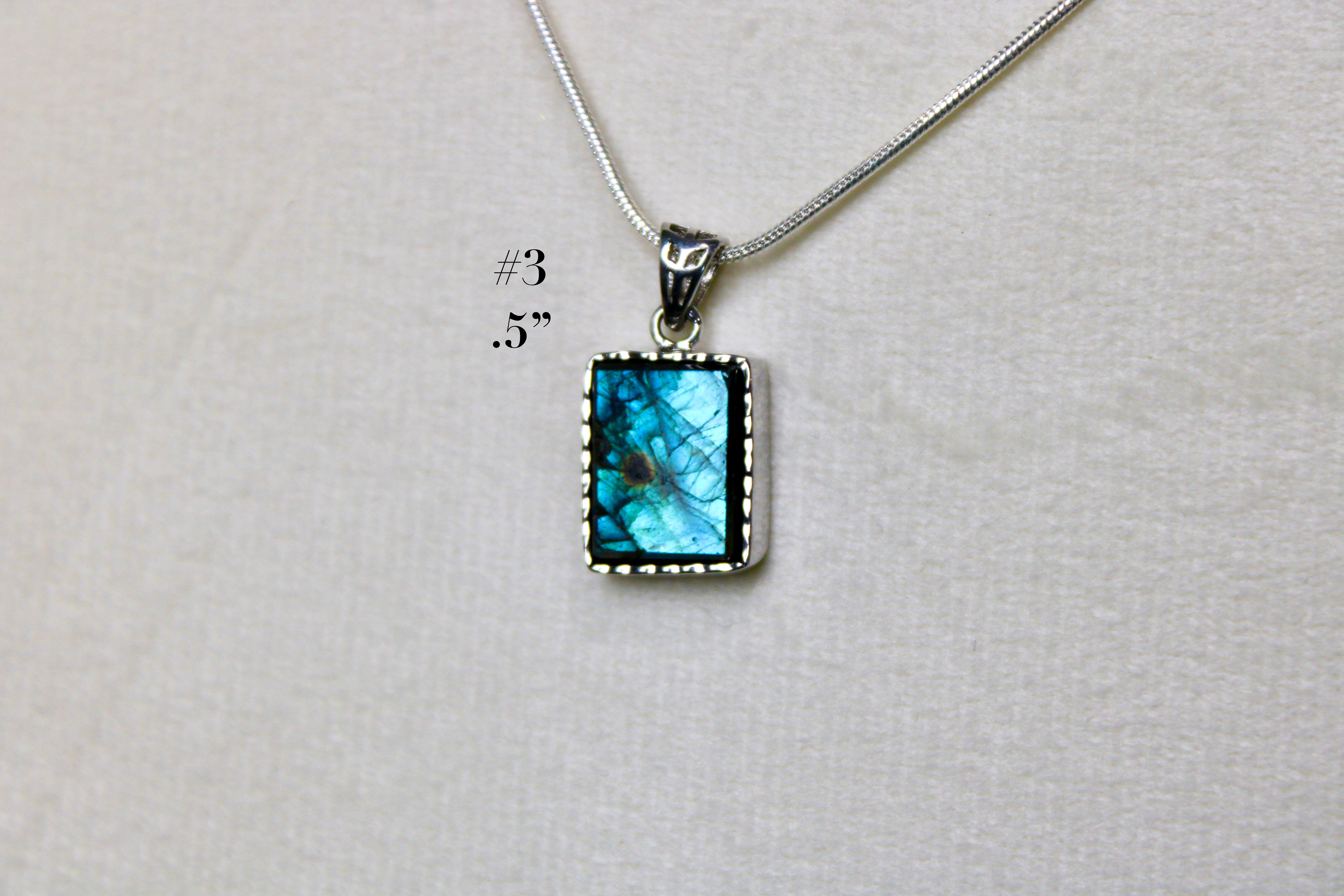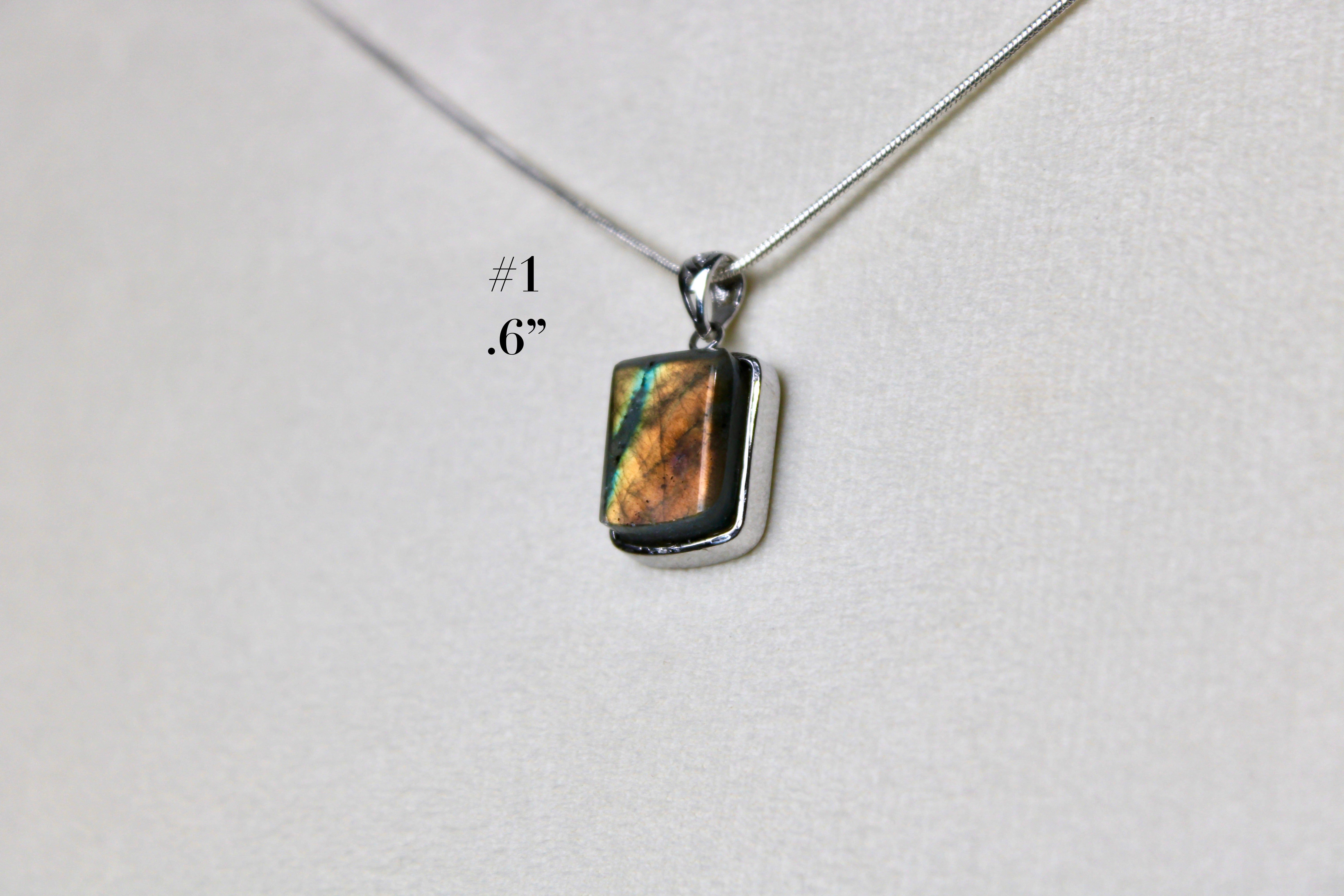 Labradorite Pendant in Sterling Silver 925 – High Shine Faceted Stone Necklace, Genuine Silver Stamped Setting, You Pick Your Exact Pendant Chain Included