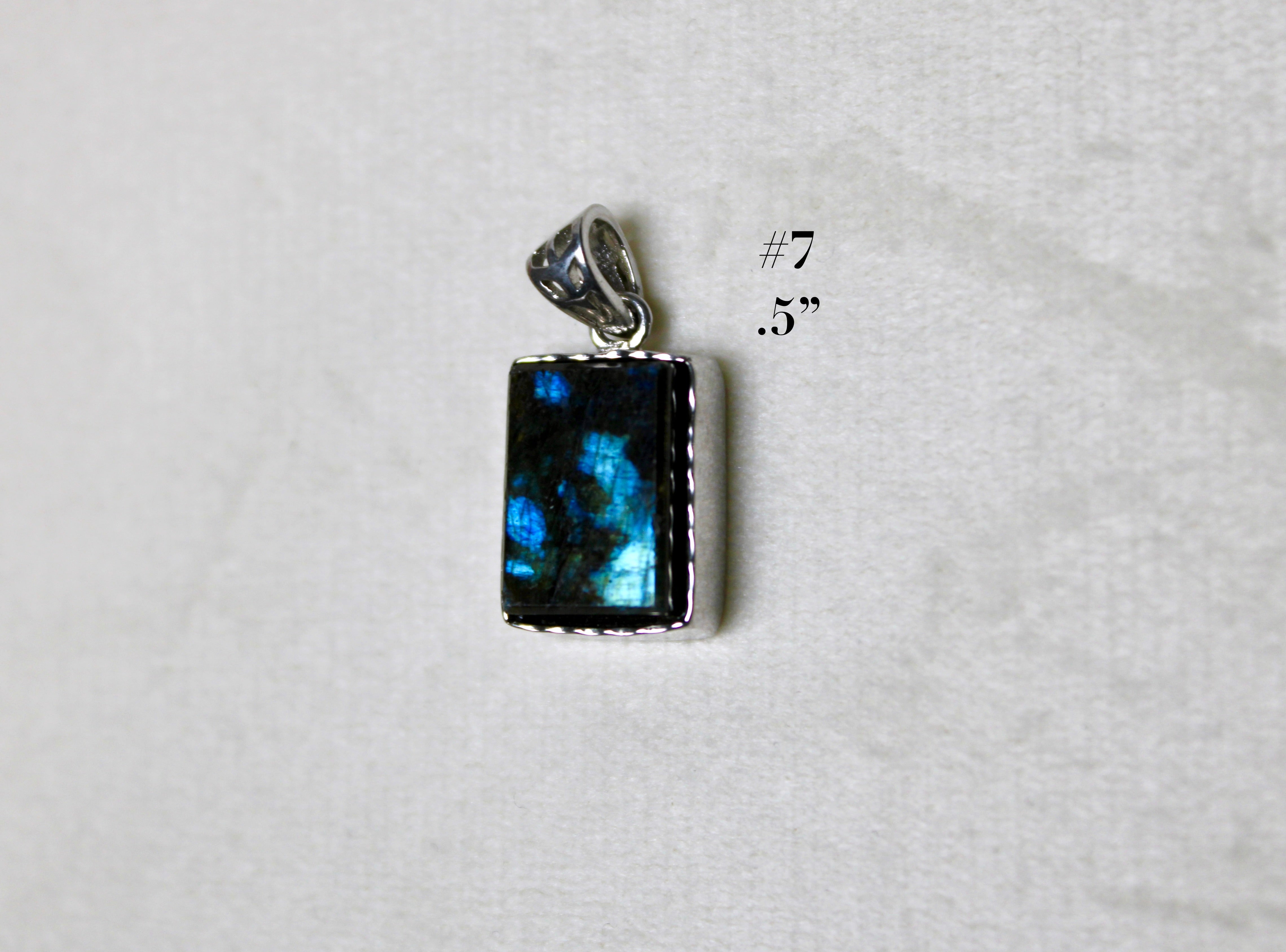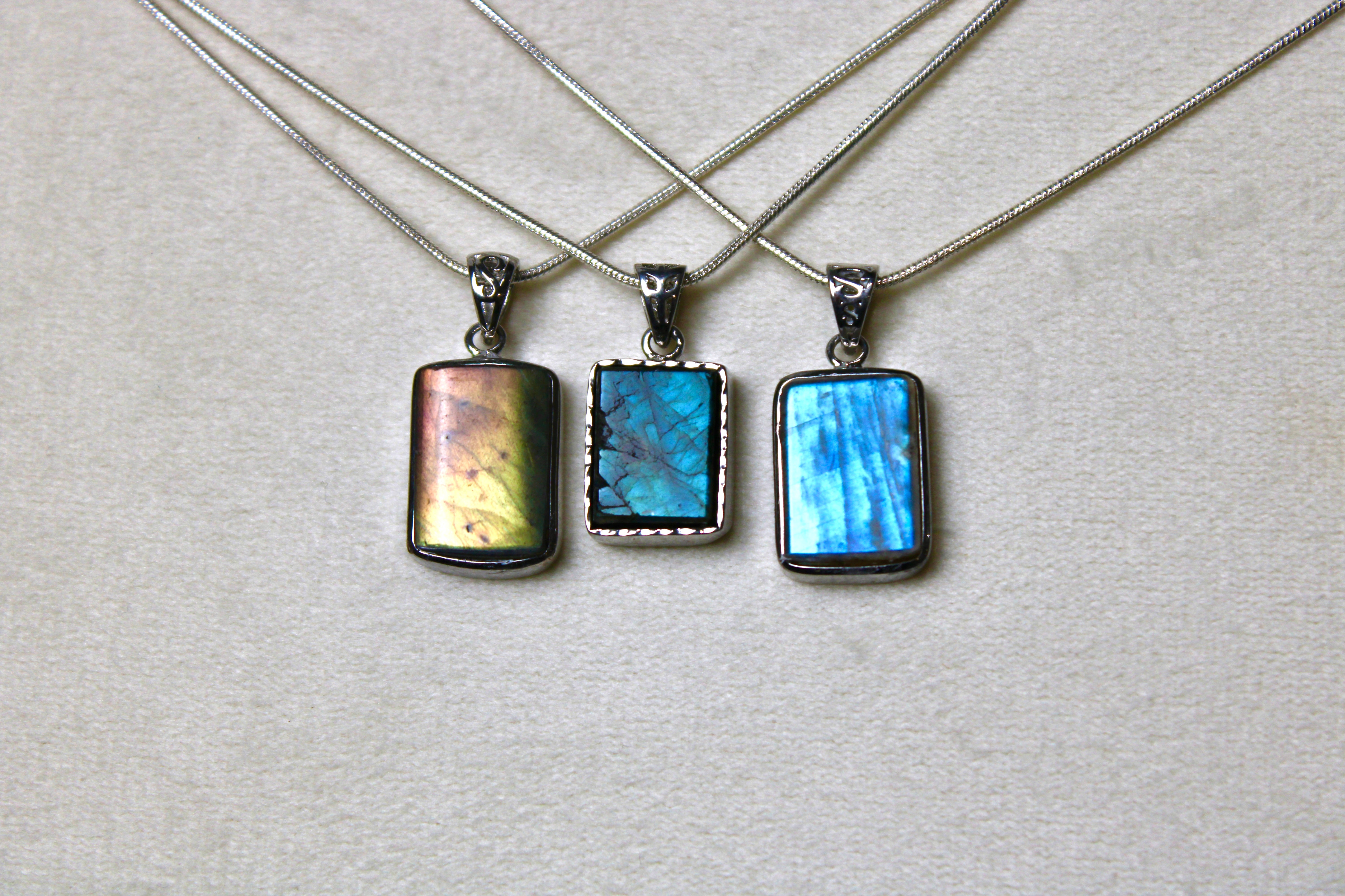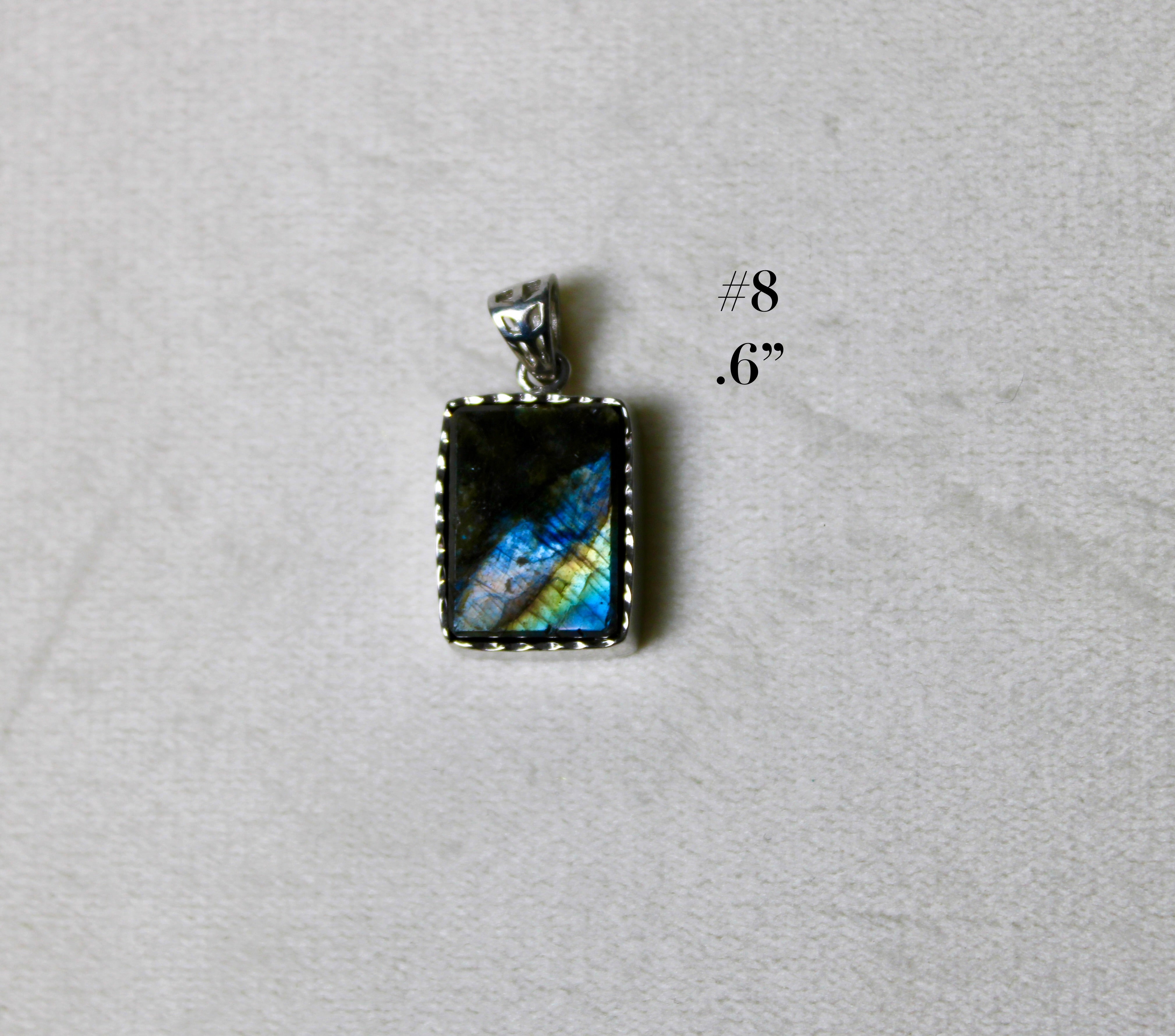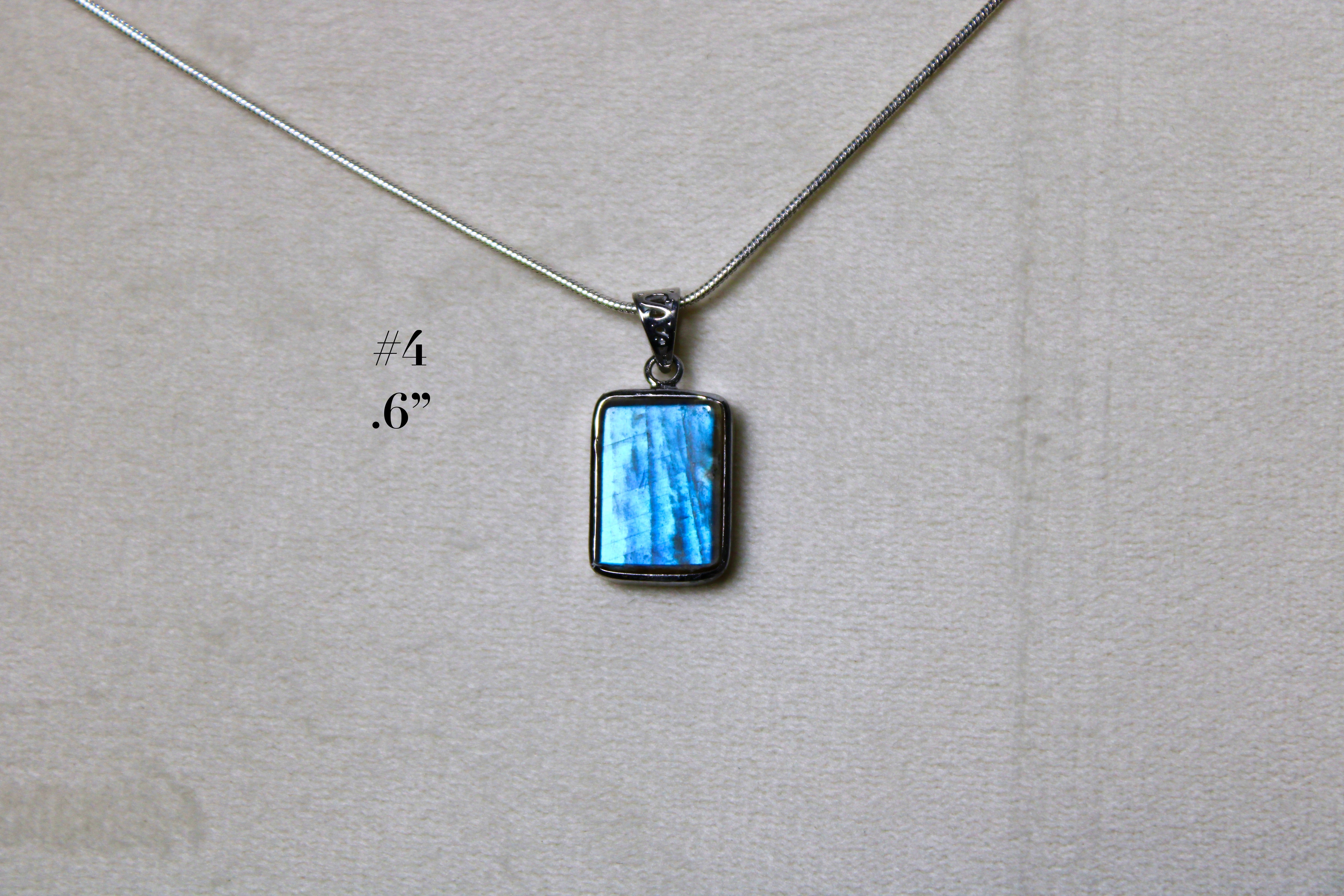 Labradorite Pendant in Sterling Silver 925 – High Shine Faceted Stone Necklace, Genuine Silver Stamped Setting, You Pick Your Exact Pendant Chain Included