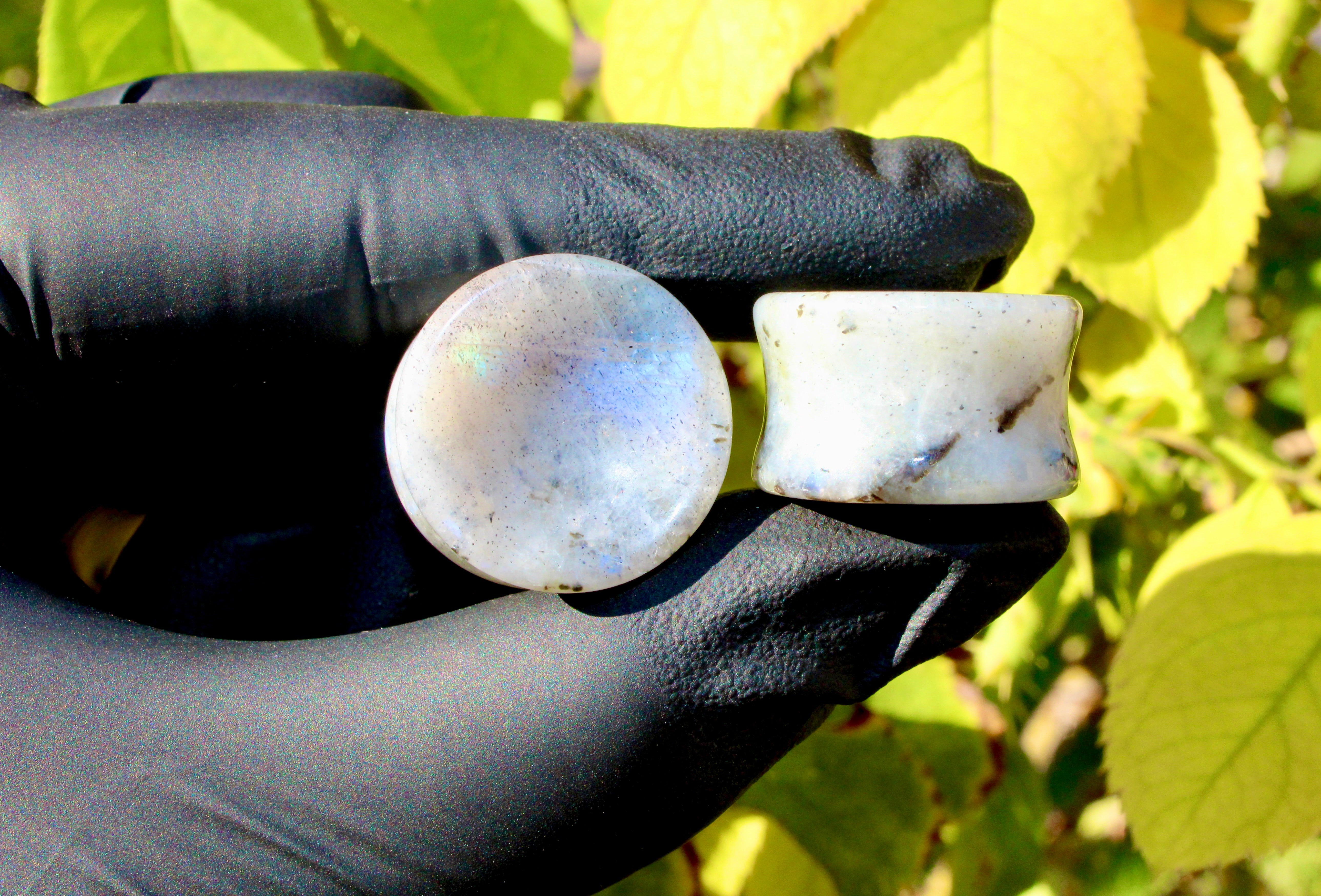 Moonstone Double Flare Plugs RARE Rainbow Moonstone Gauges 3mm-19mm