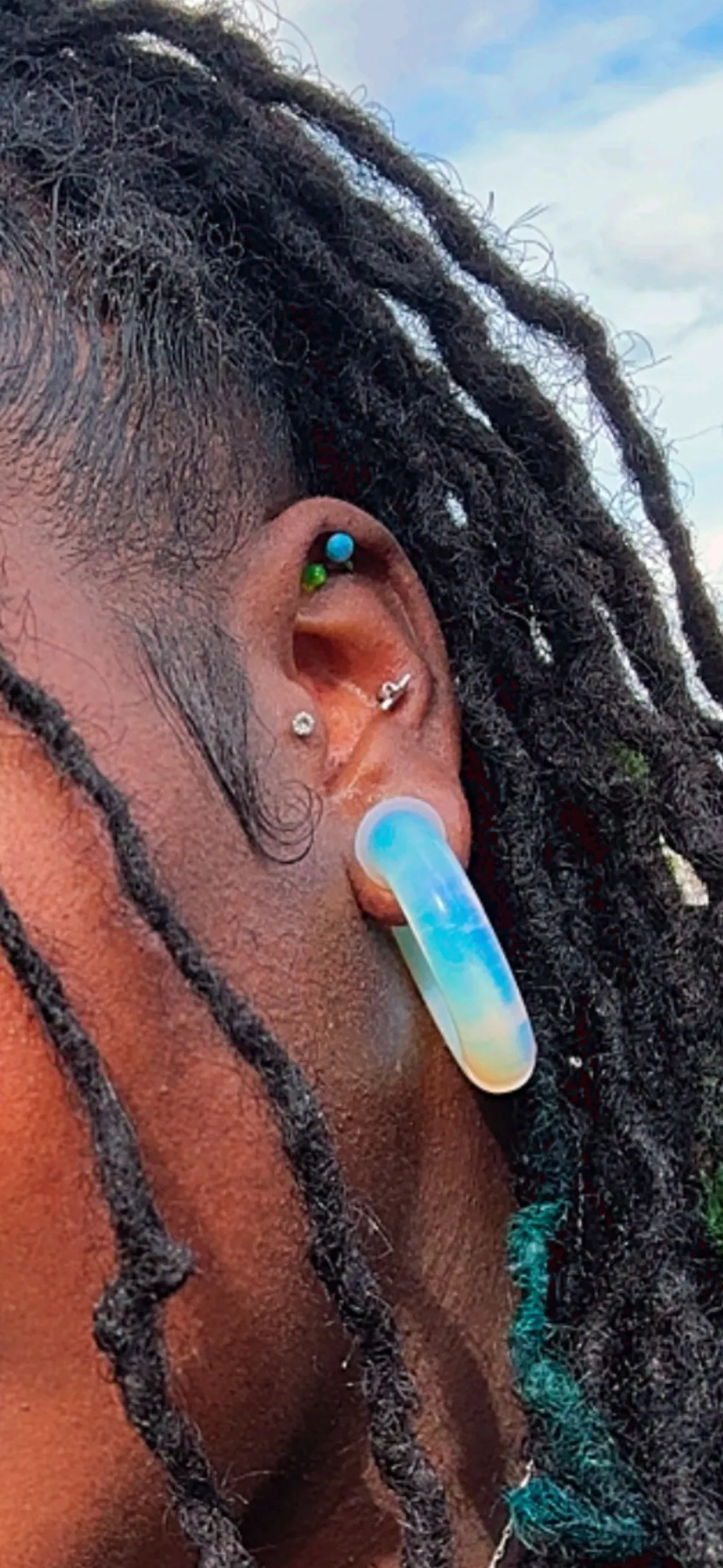 Opalite Hoop Gauges – Polished Glass Ear Weights Description: Material: Opalite (man-made iridescent glass)Color: Milky white with a glowing blue... Read more