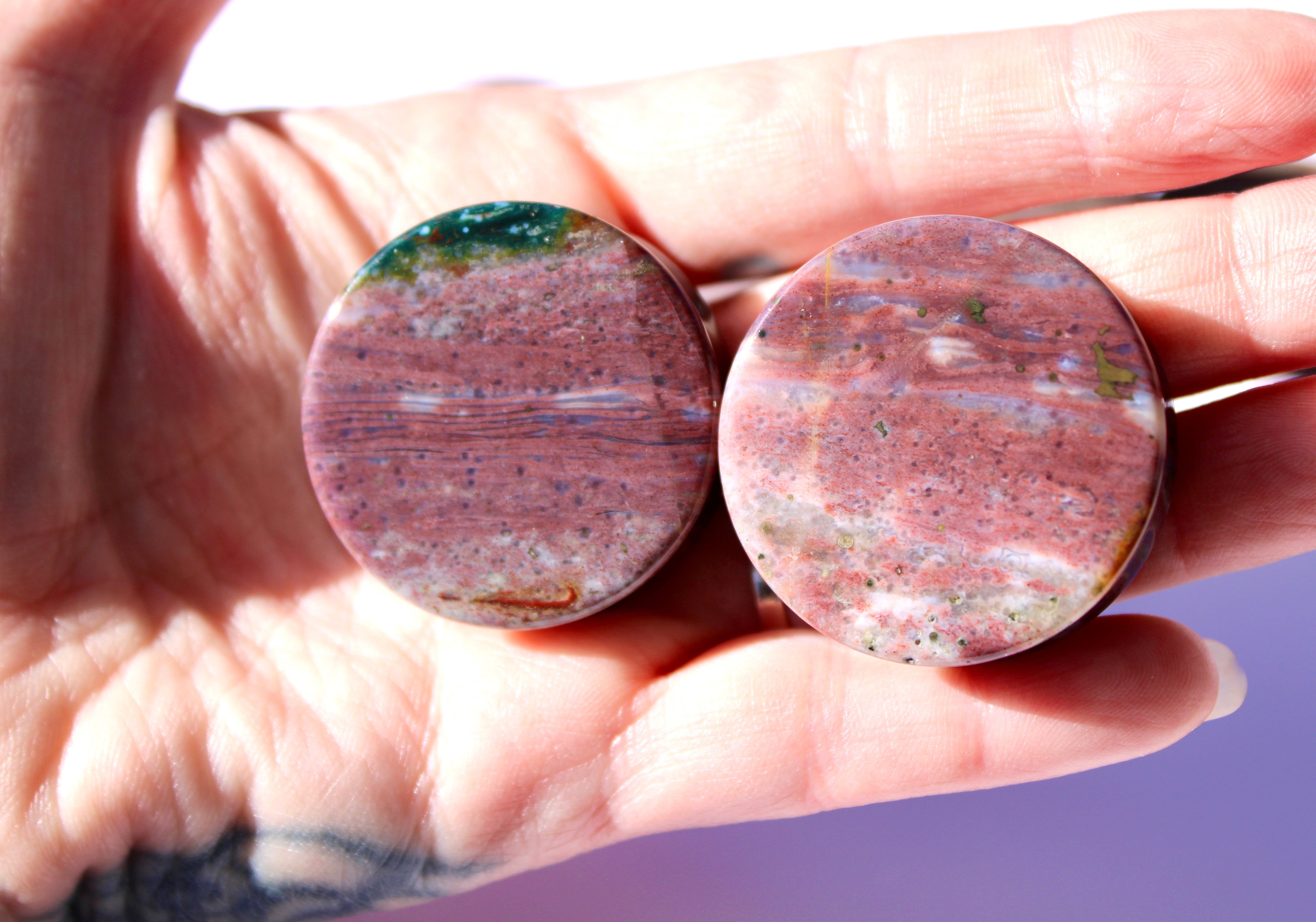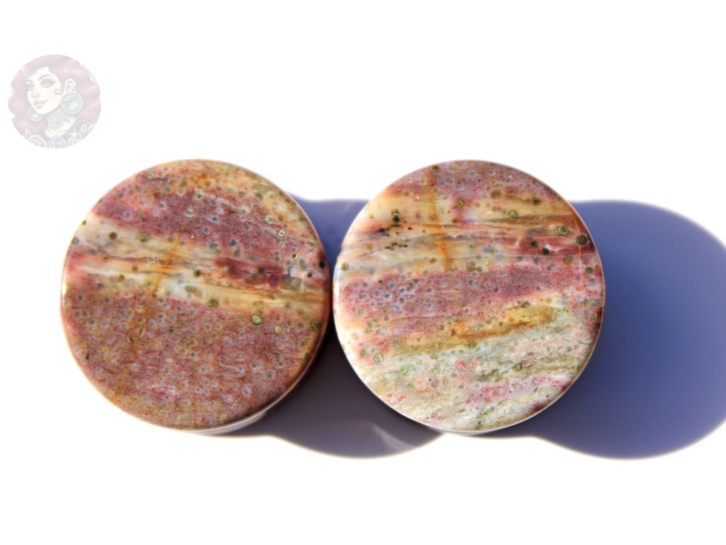 Pink and Purple Orbicular Jasper Double Flare Plugs – Natural Stone Ear Gauges Pair
