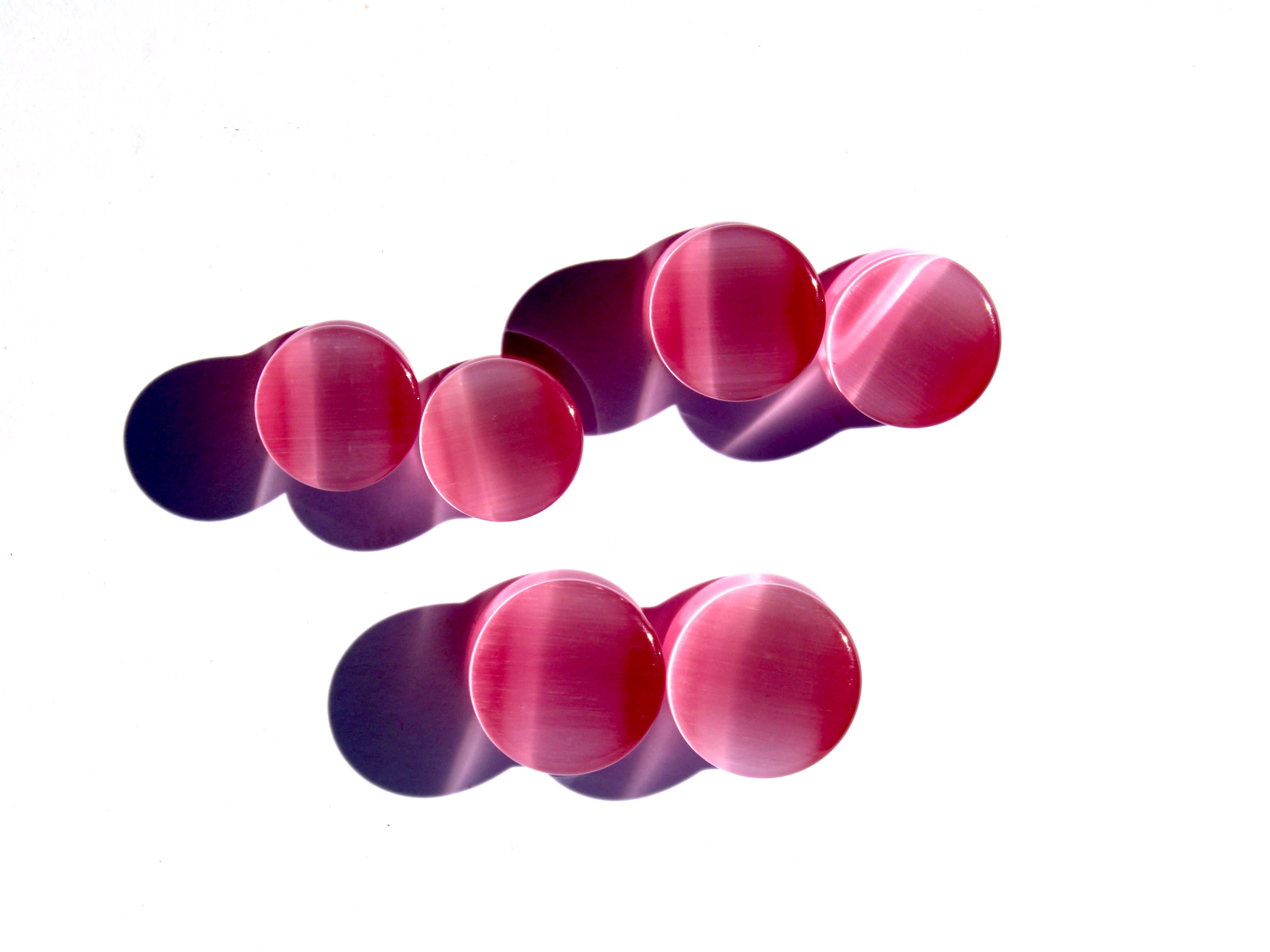 Pink Cat's Eye Glass Plugs Double Flare Pair 3mm-25mm (Half Sizes available!)