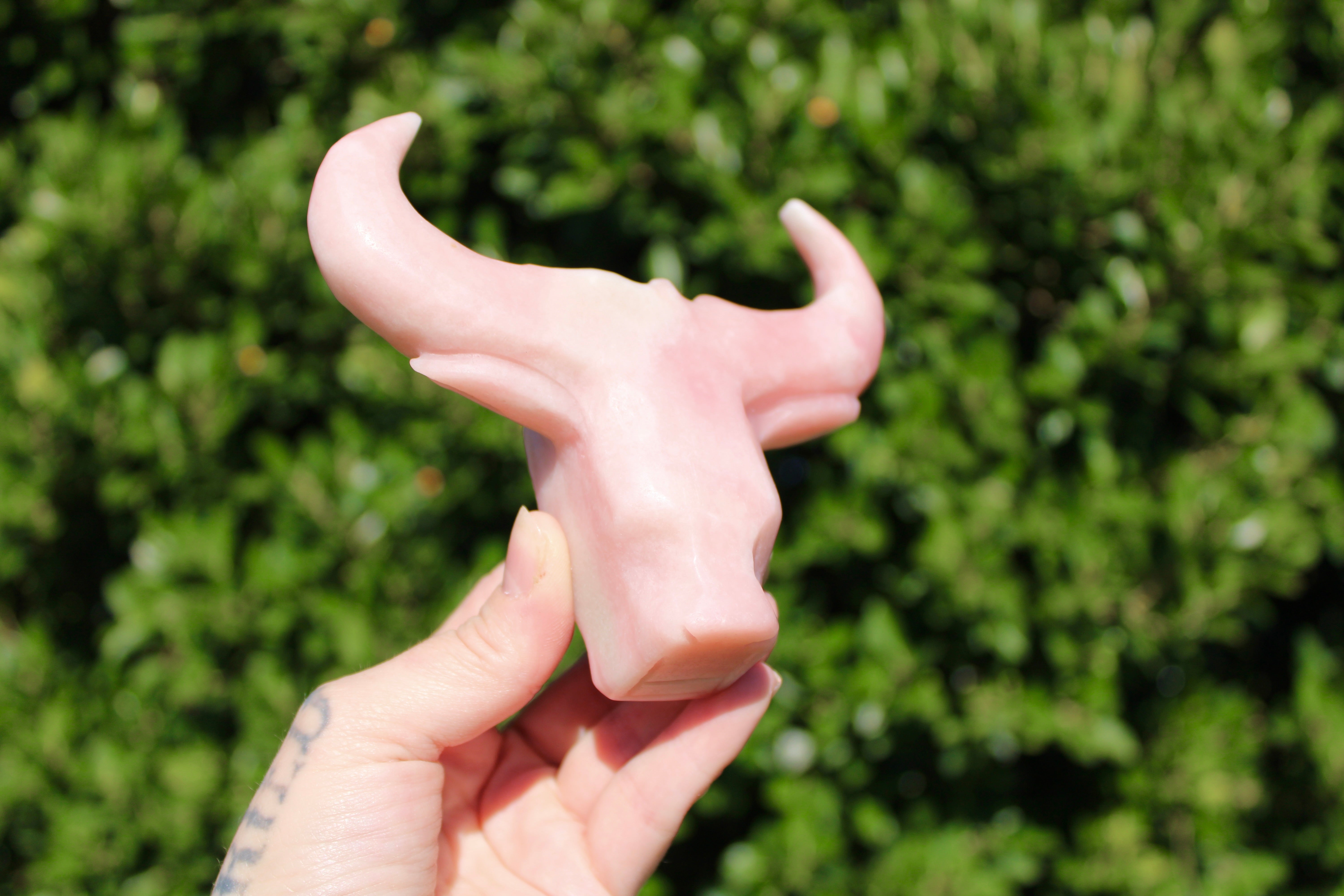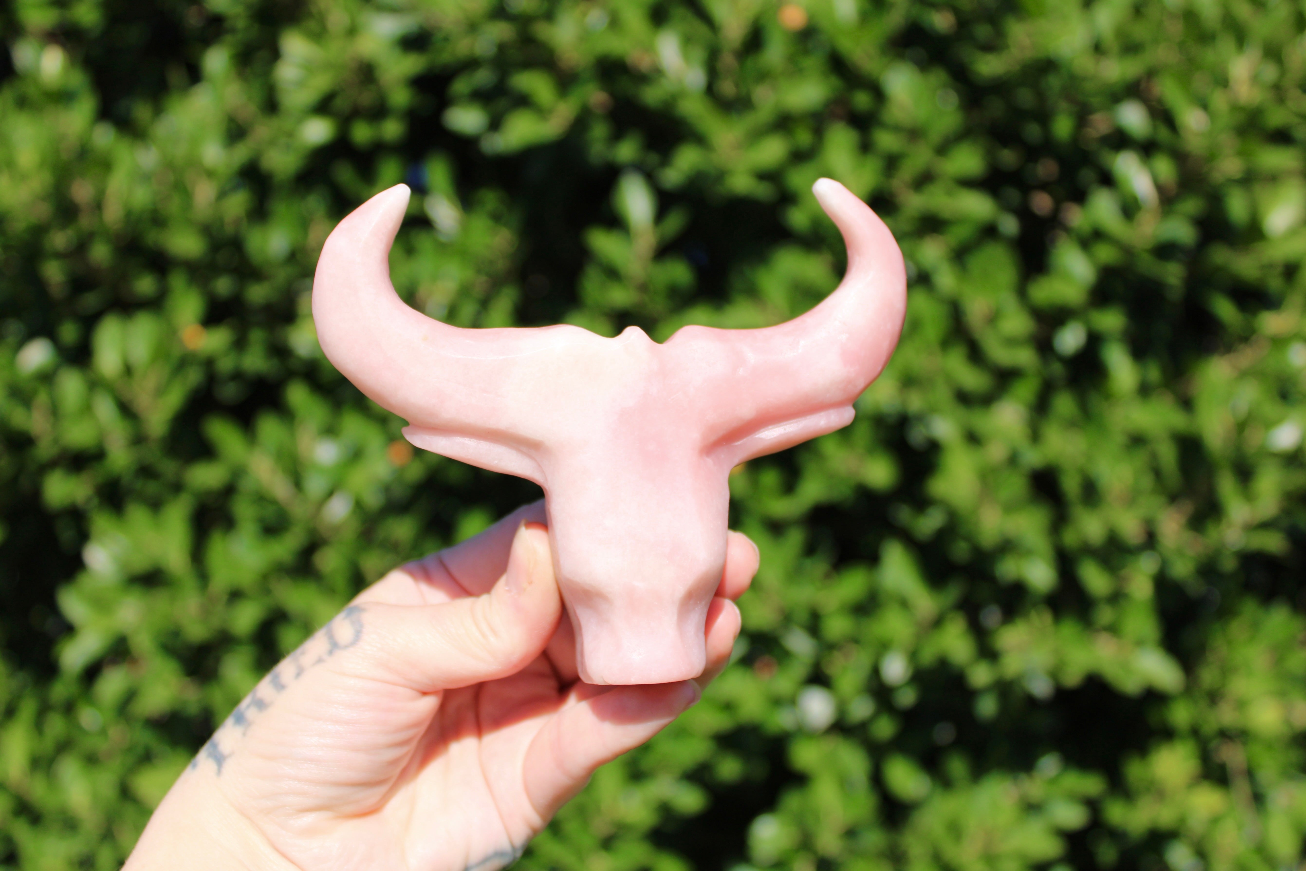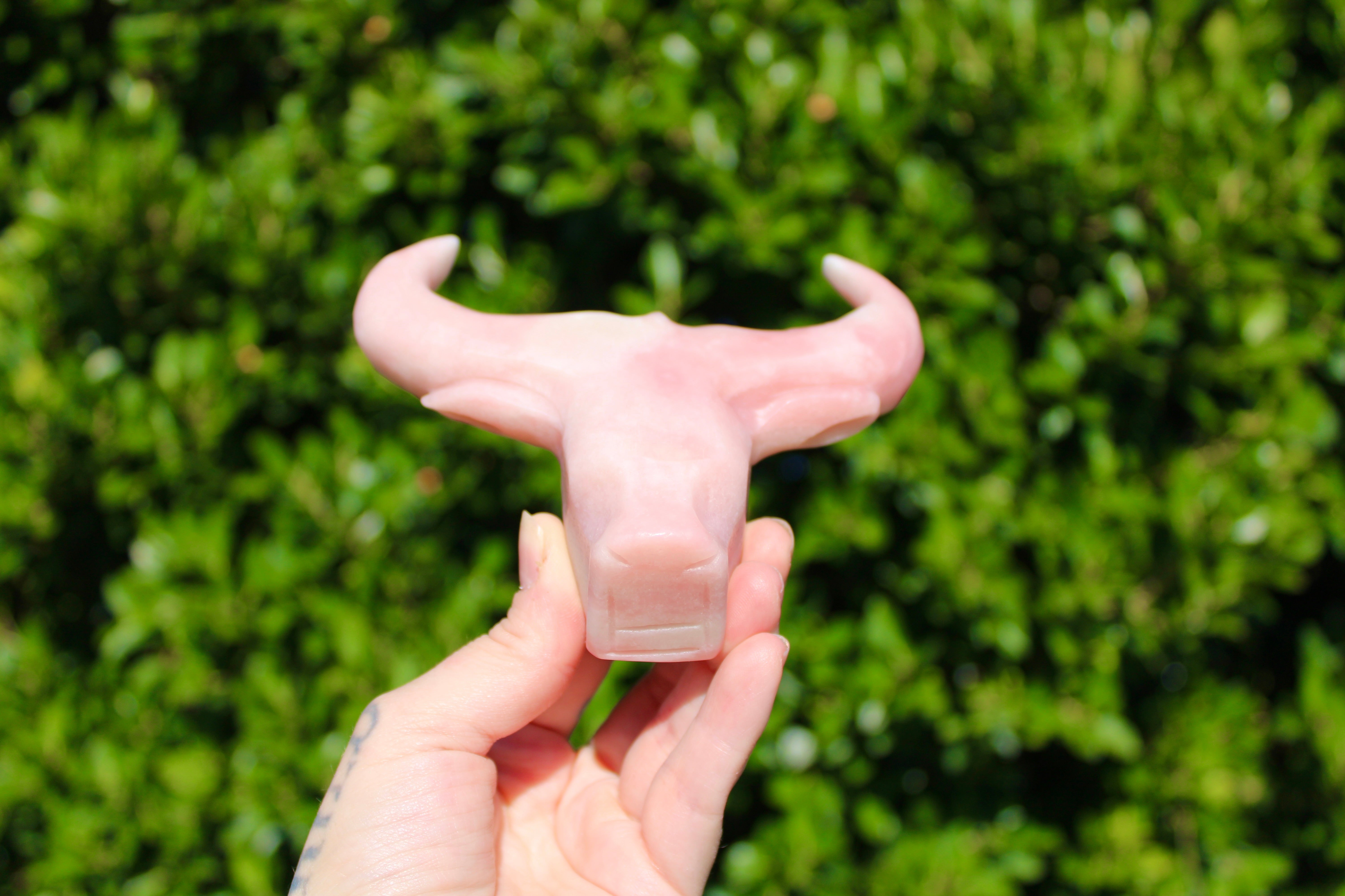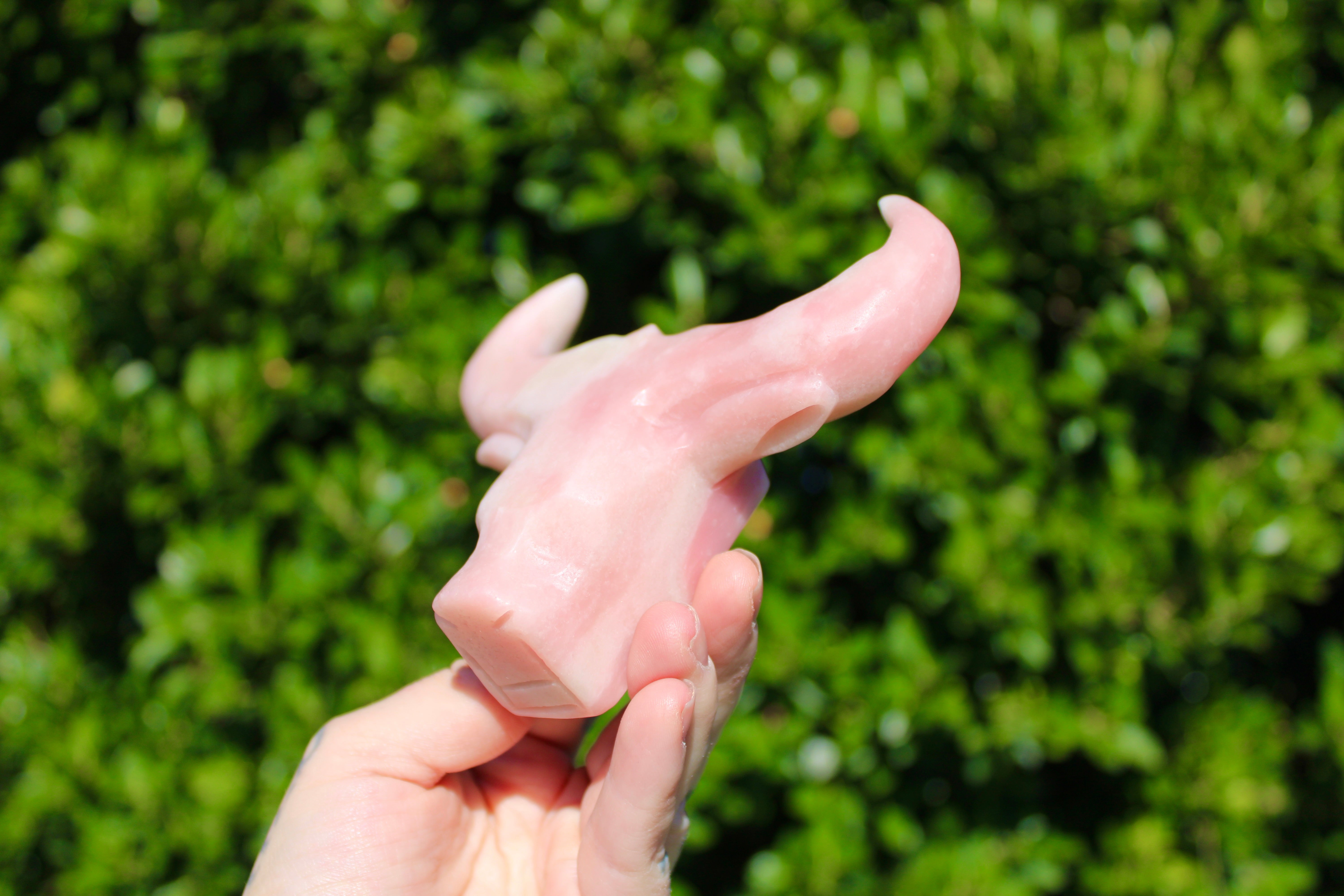 Pink Opal Cow Carving – Pink and White Natural Stone Animal Figurine, Polished Carved Cow Sculpture