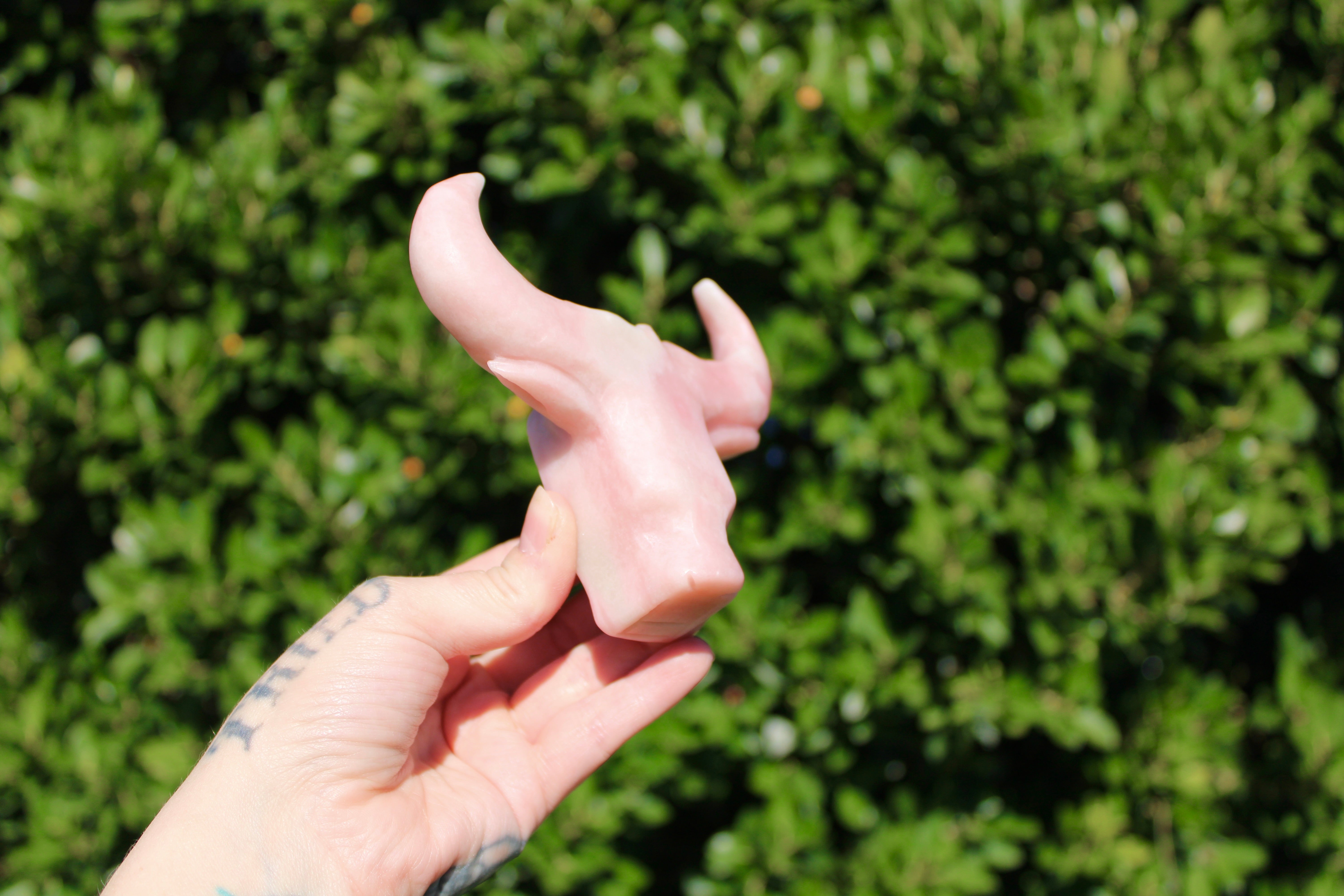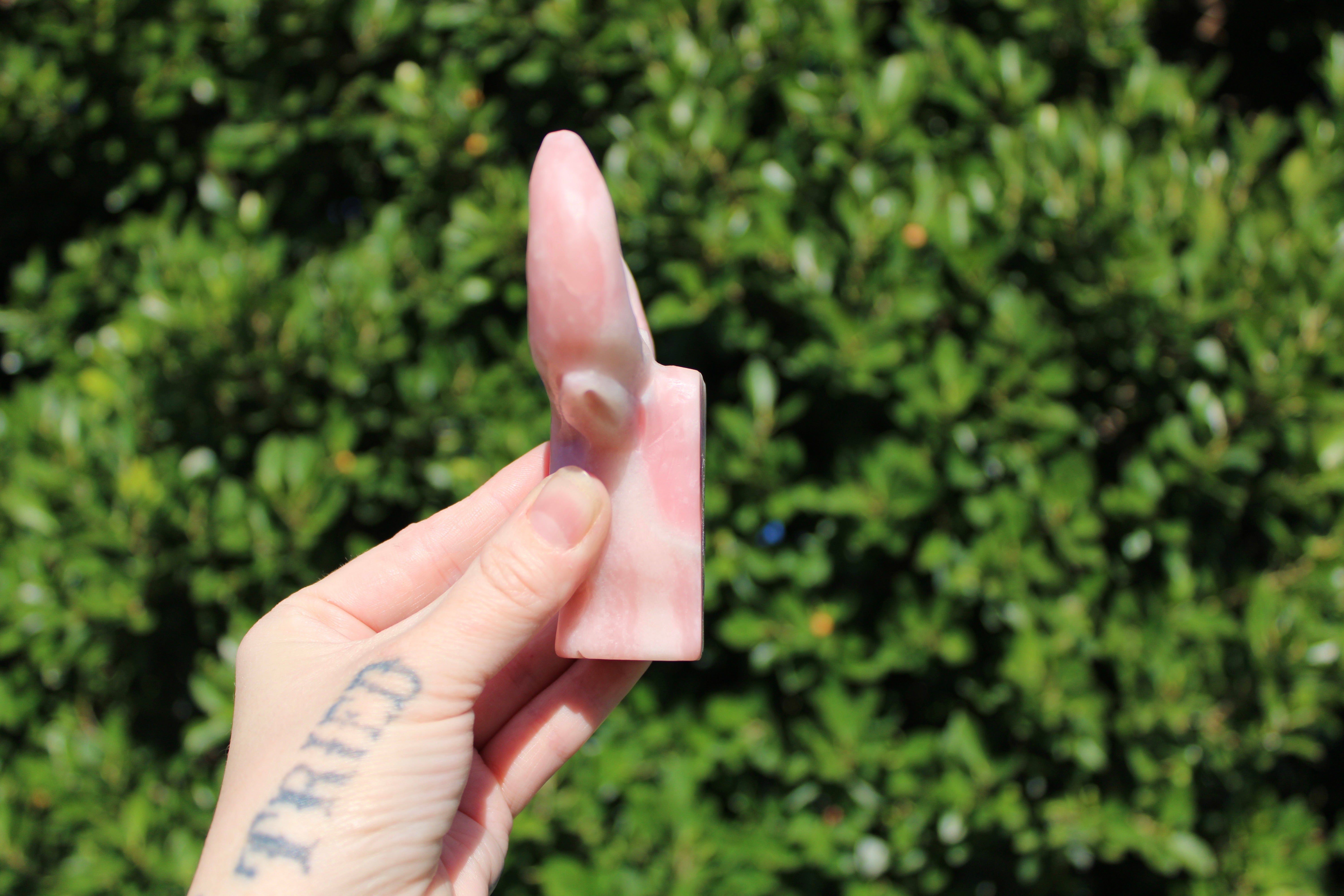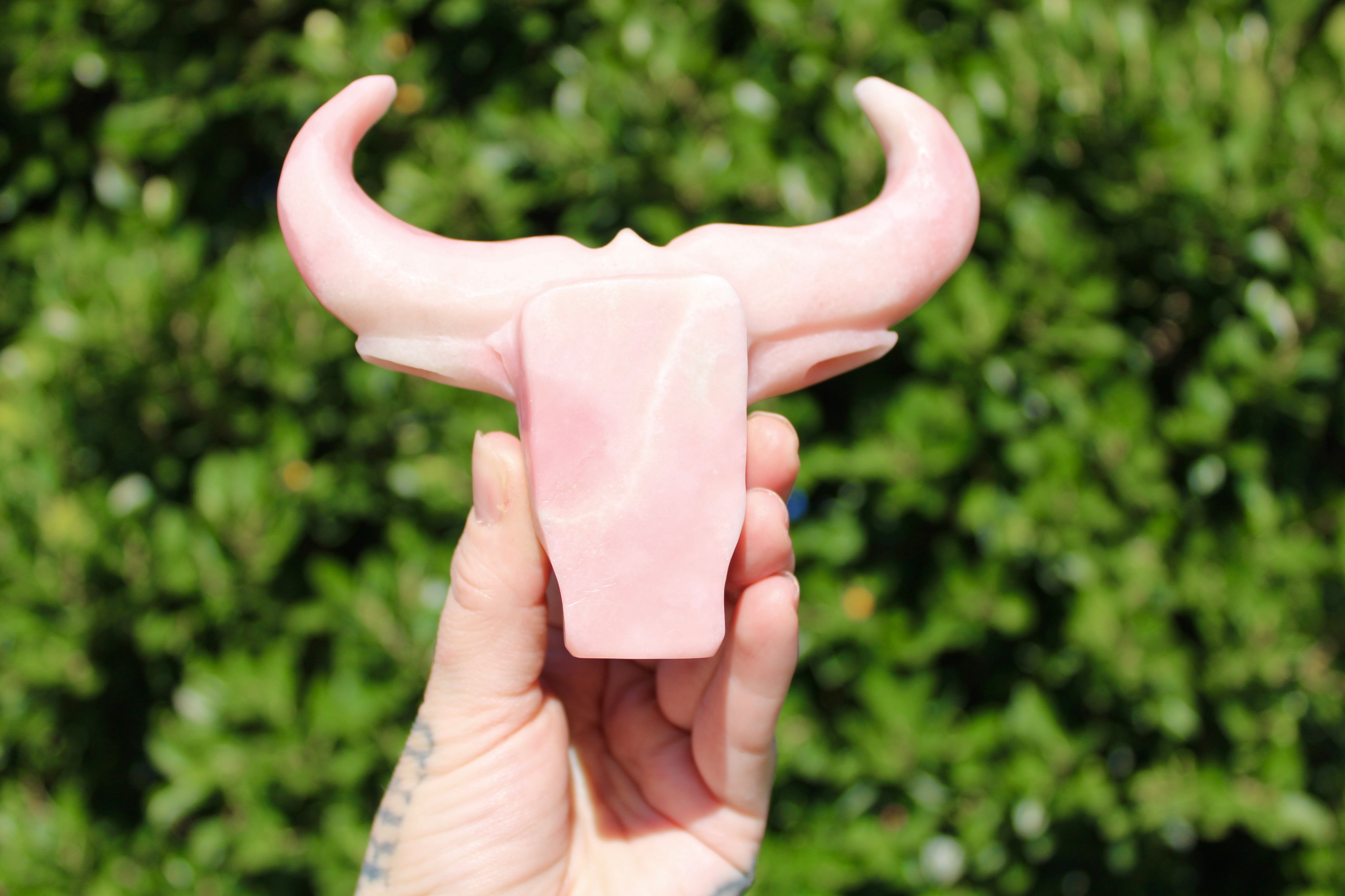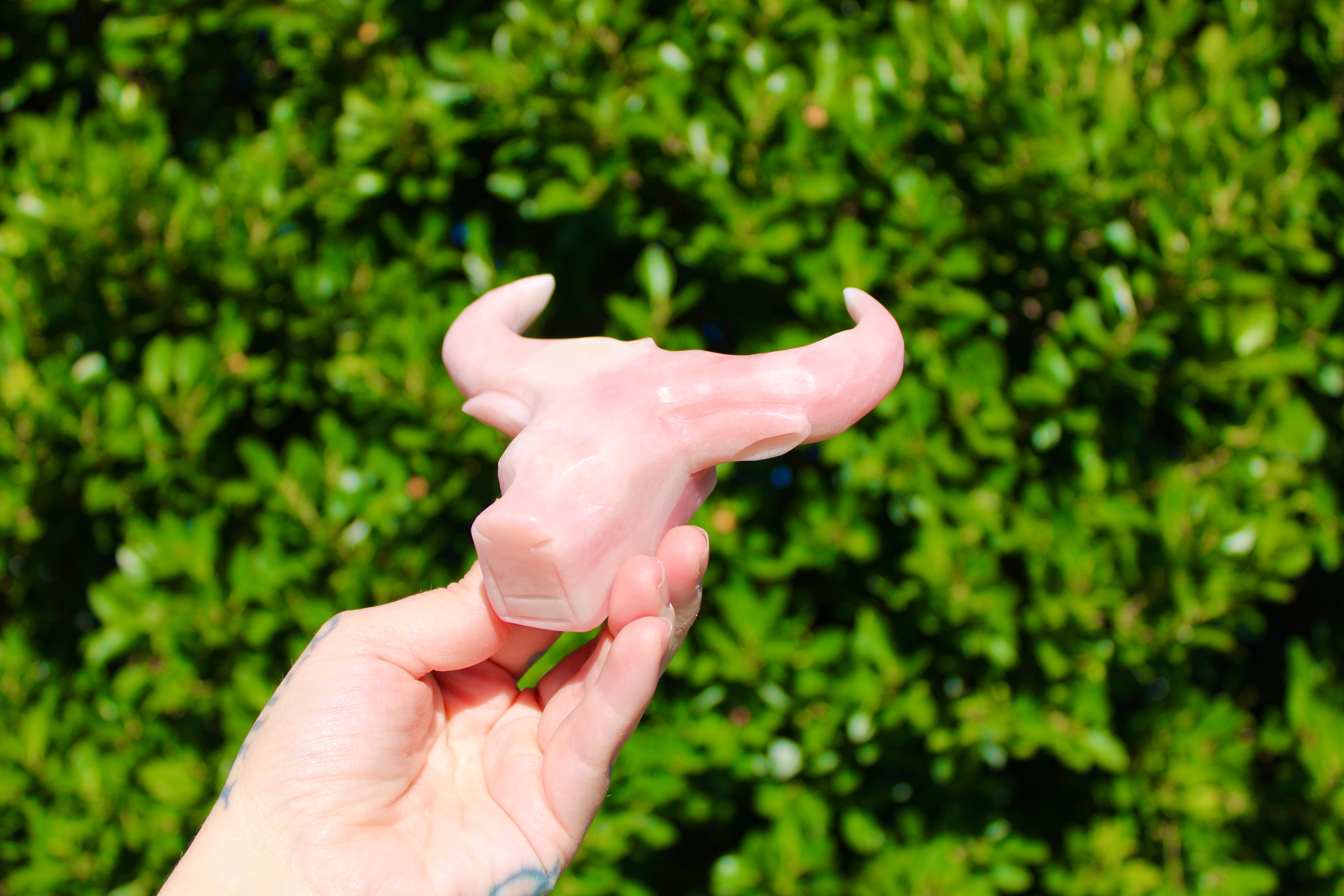 Pink Opal Cow Carving – Pink and White Natural Stone Animal Figurine, Polished Carved Cow Sculpture