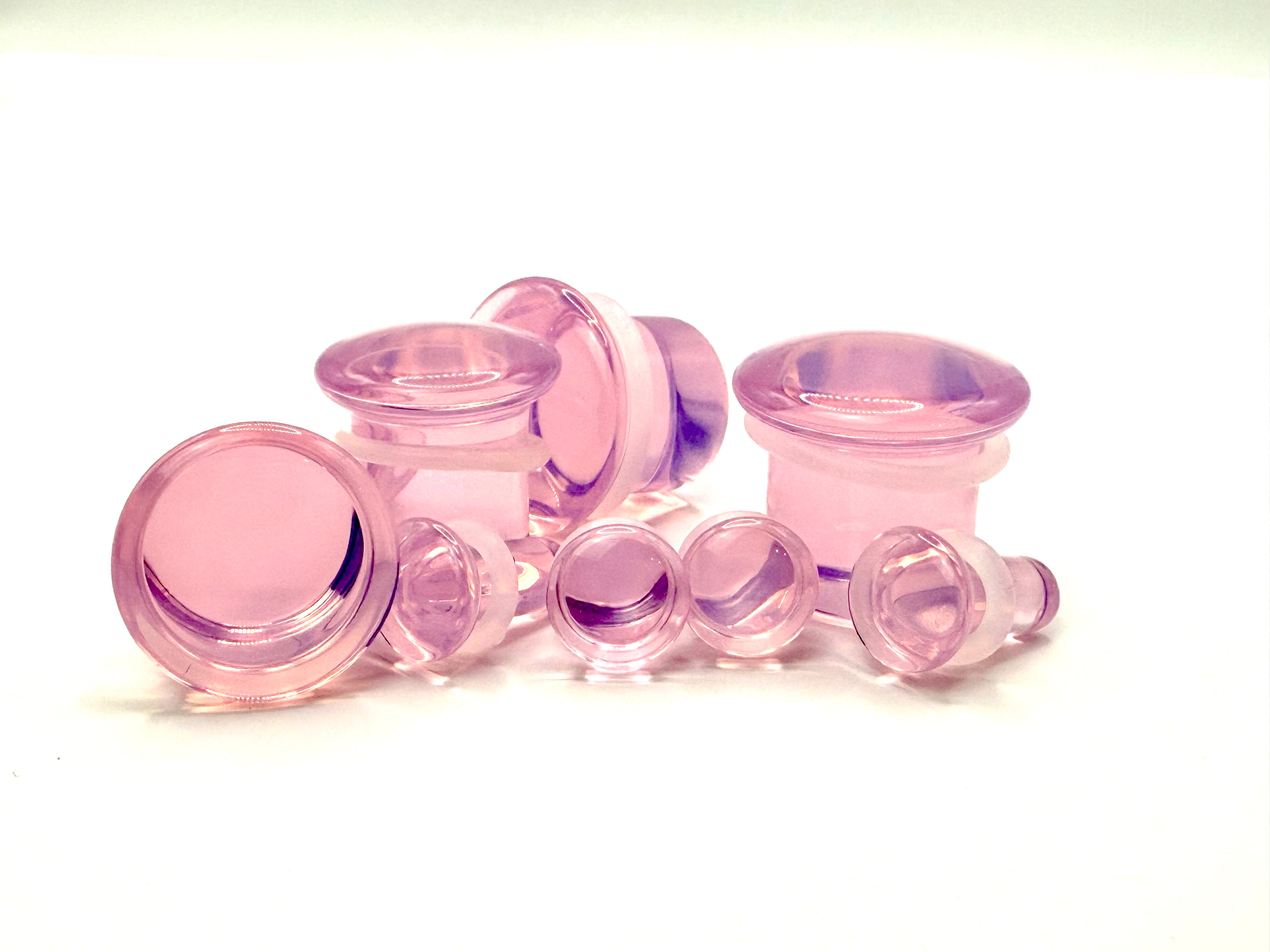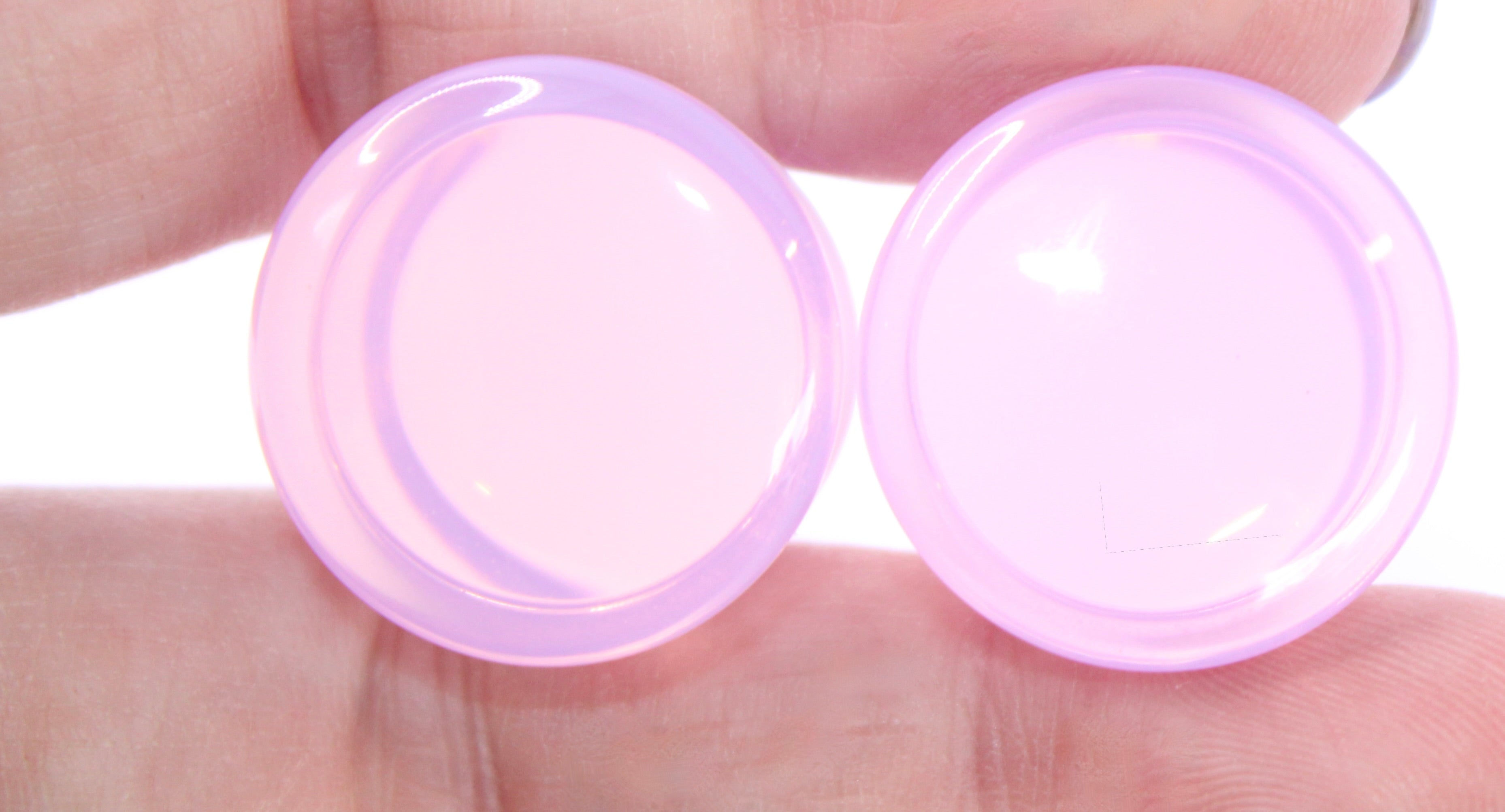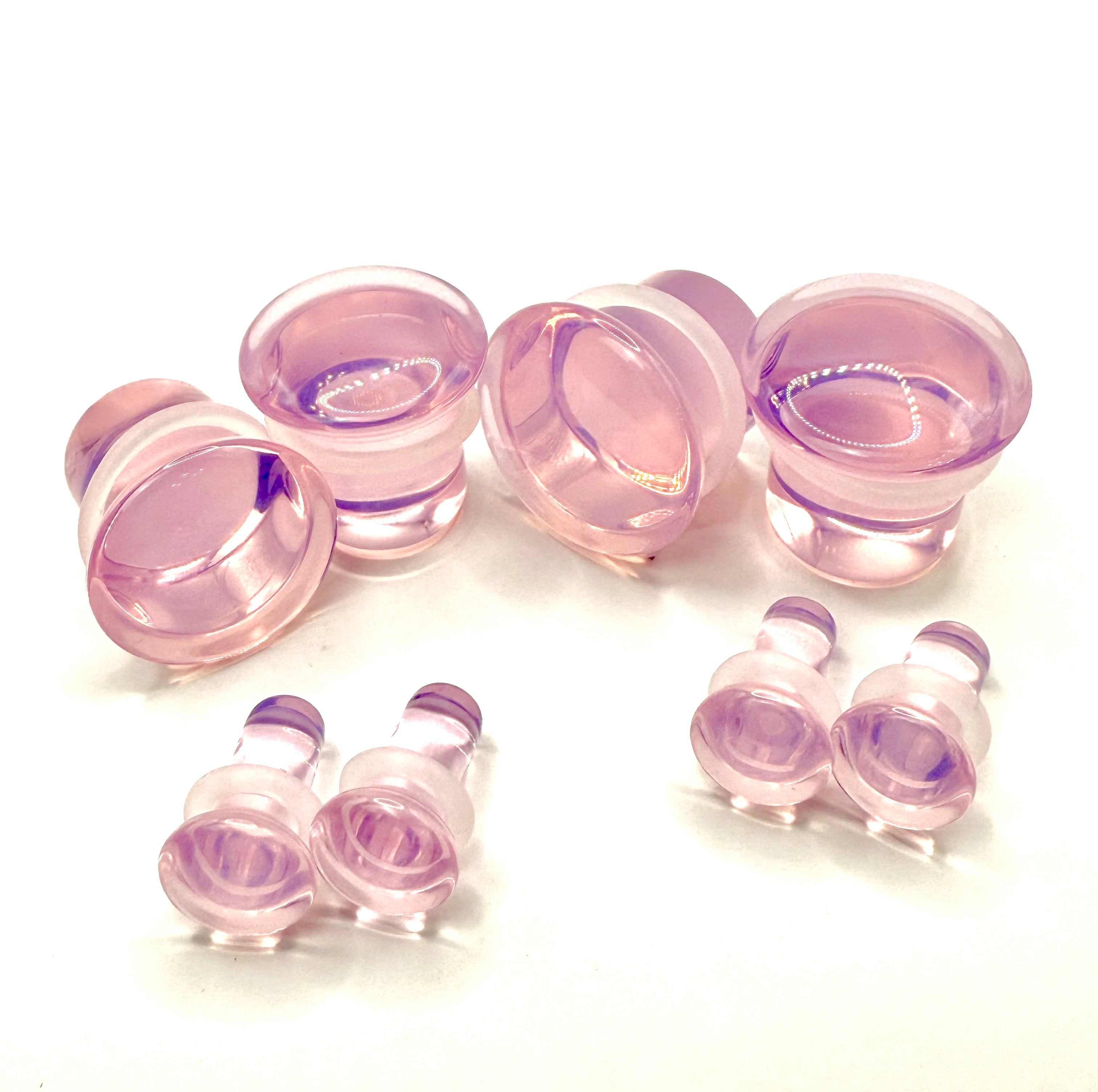 Pink Opalite Plugs – Single Flare Crystal Gauges with O-Rings (Pair), Soft Pink 3mm-20mm