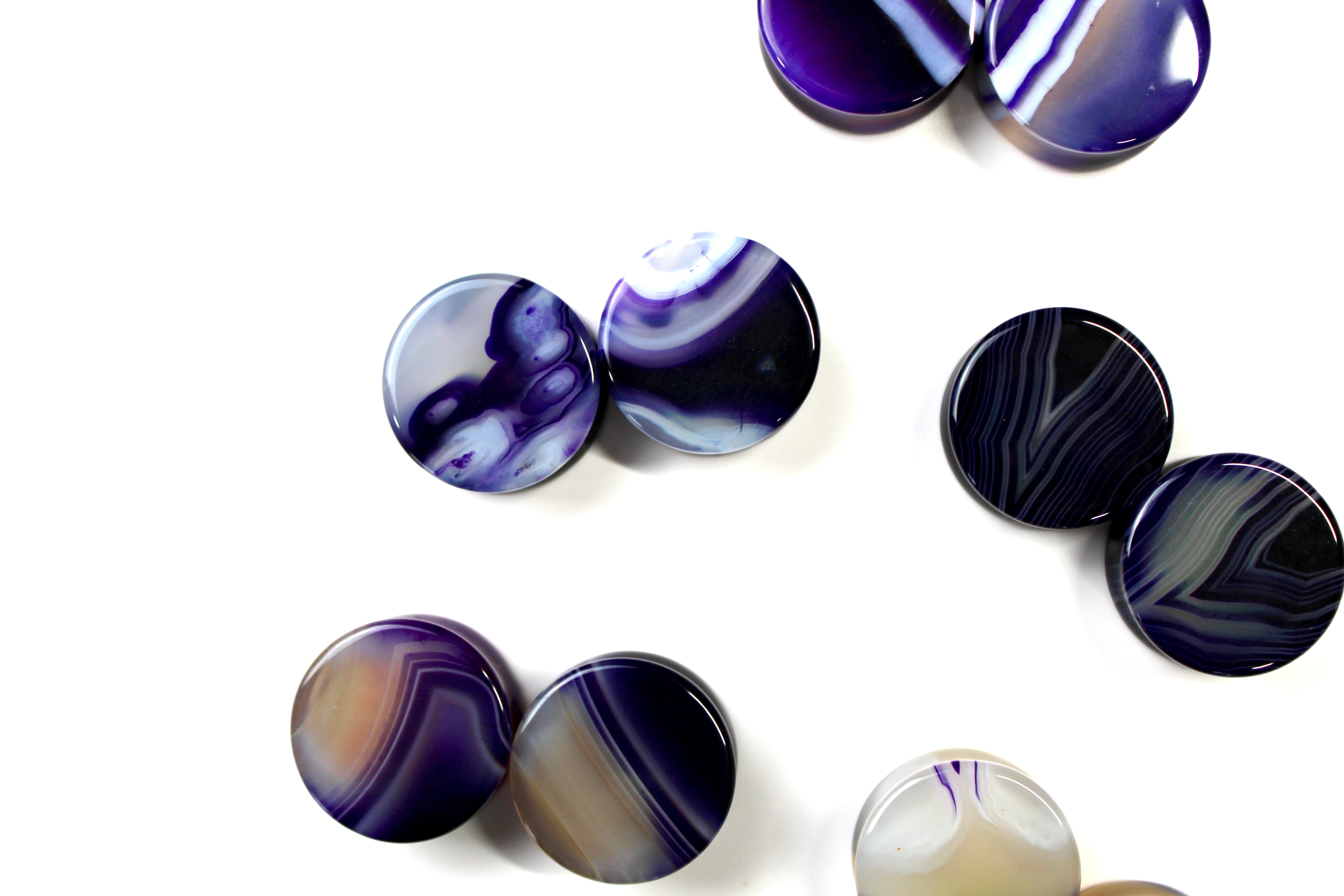 Purple Striped Agate Stone Plugs Double Flare Pair 5mm-38mm