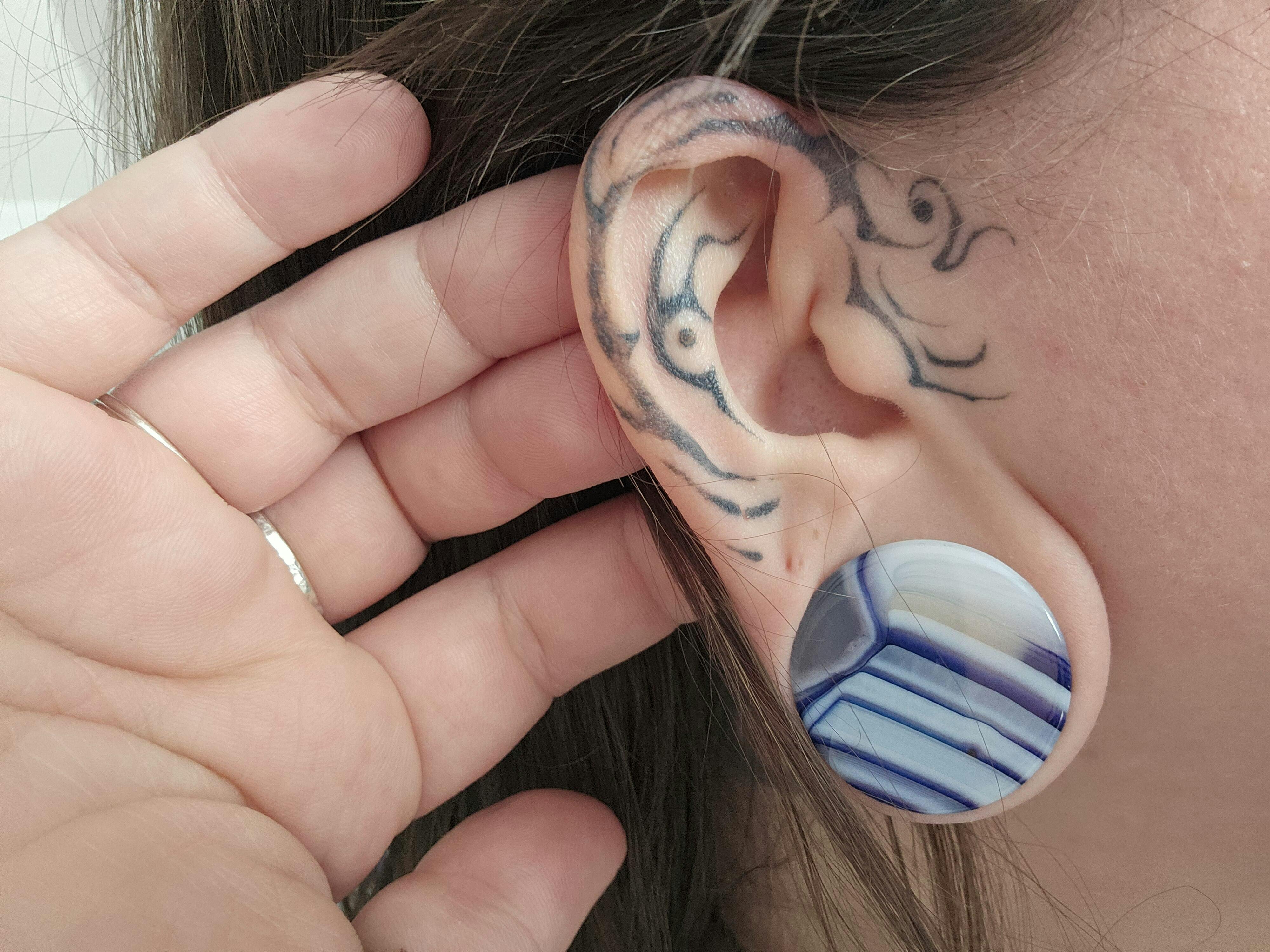 Purple Striped Agate Stone Plugs Double Flare Pair Material: Genuine Striped Agate (dyed natural agate)Color: Vibrant purple with natural banded... Read more