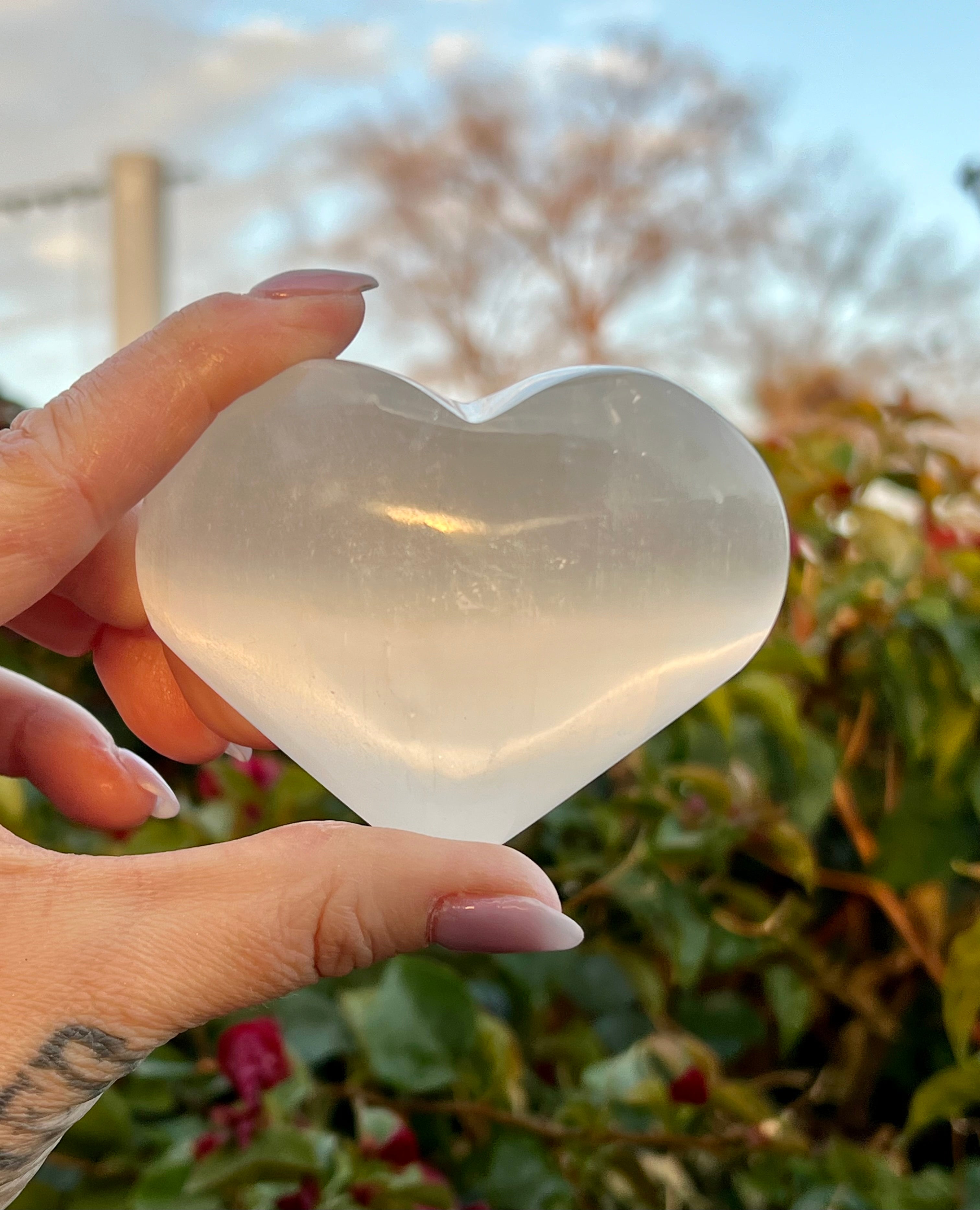 Selenite Heart Palm Crystal 80mm – Polished Crystal for Energy Cleansing, Love & Spiritual Healing/ Crown Chakra Stones Metaphysical