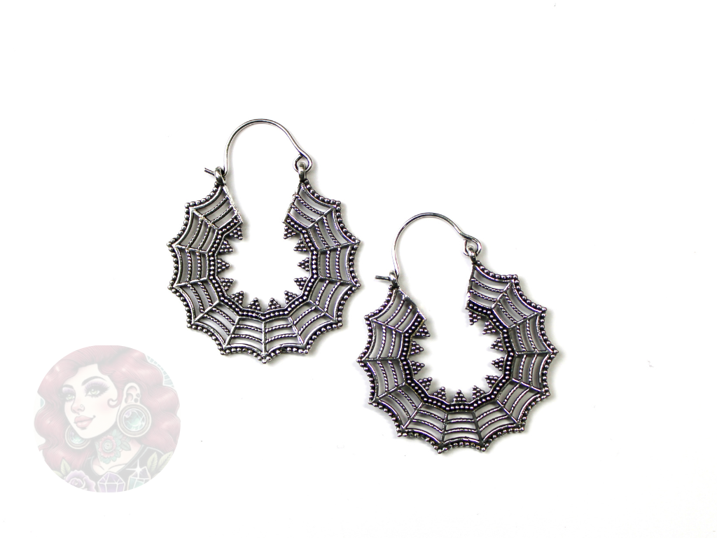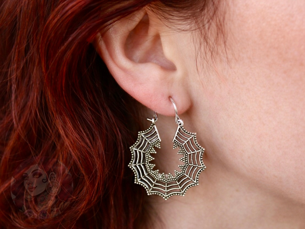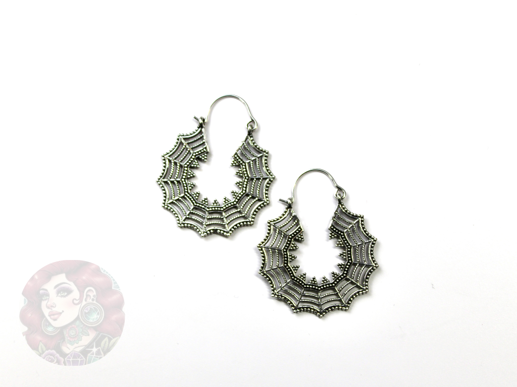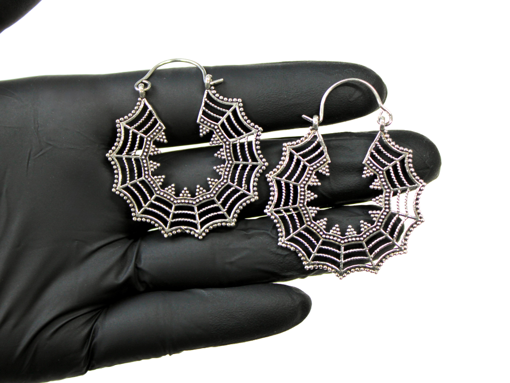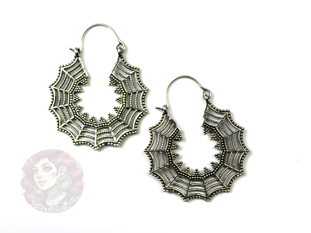 Silver Brass Spiderweb Hanger Earrings – Suitable for Standard Piercings or Stretched Ears