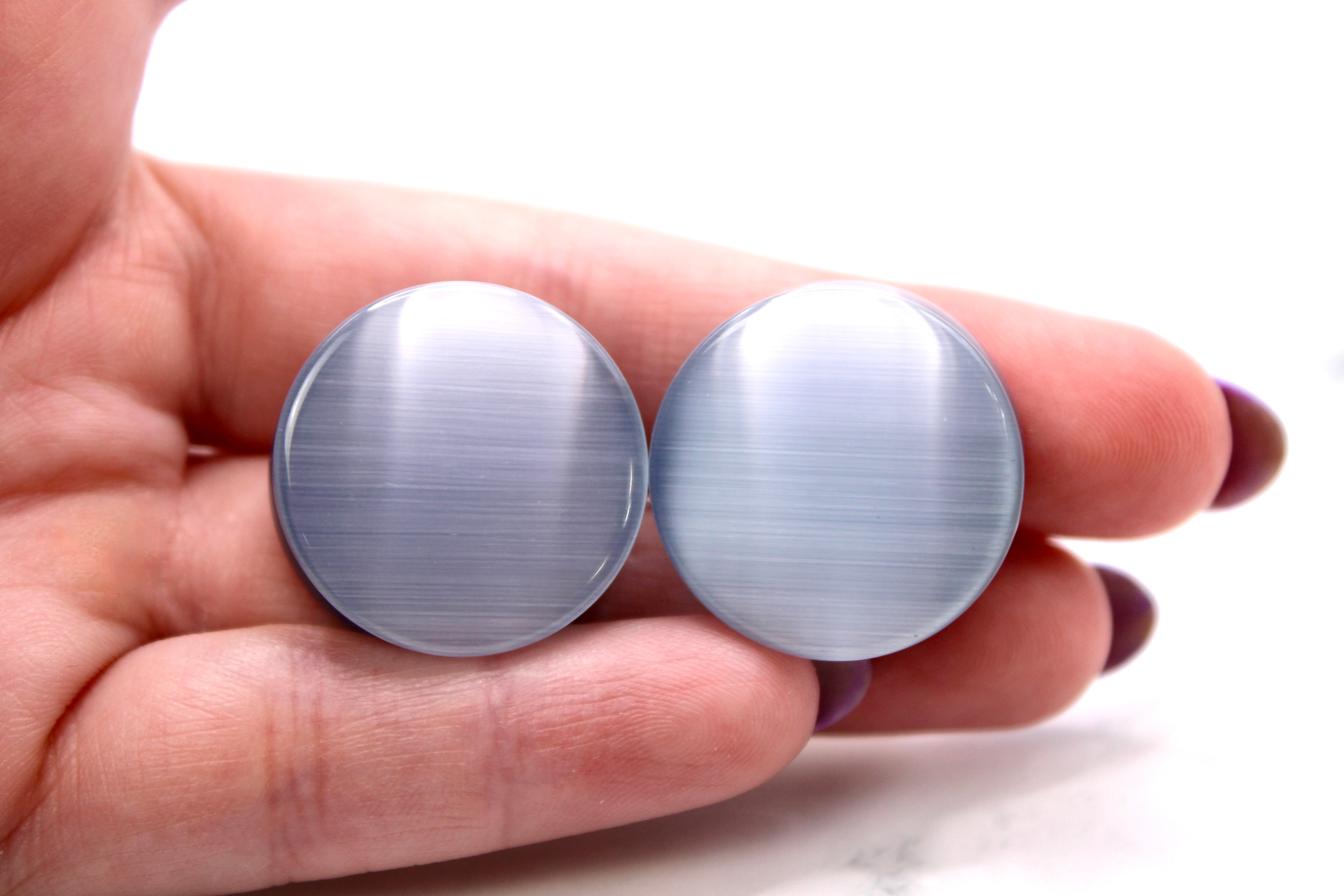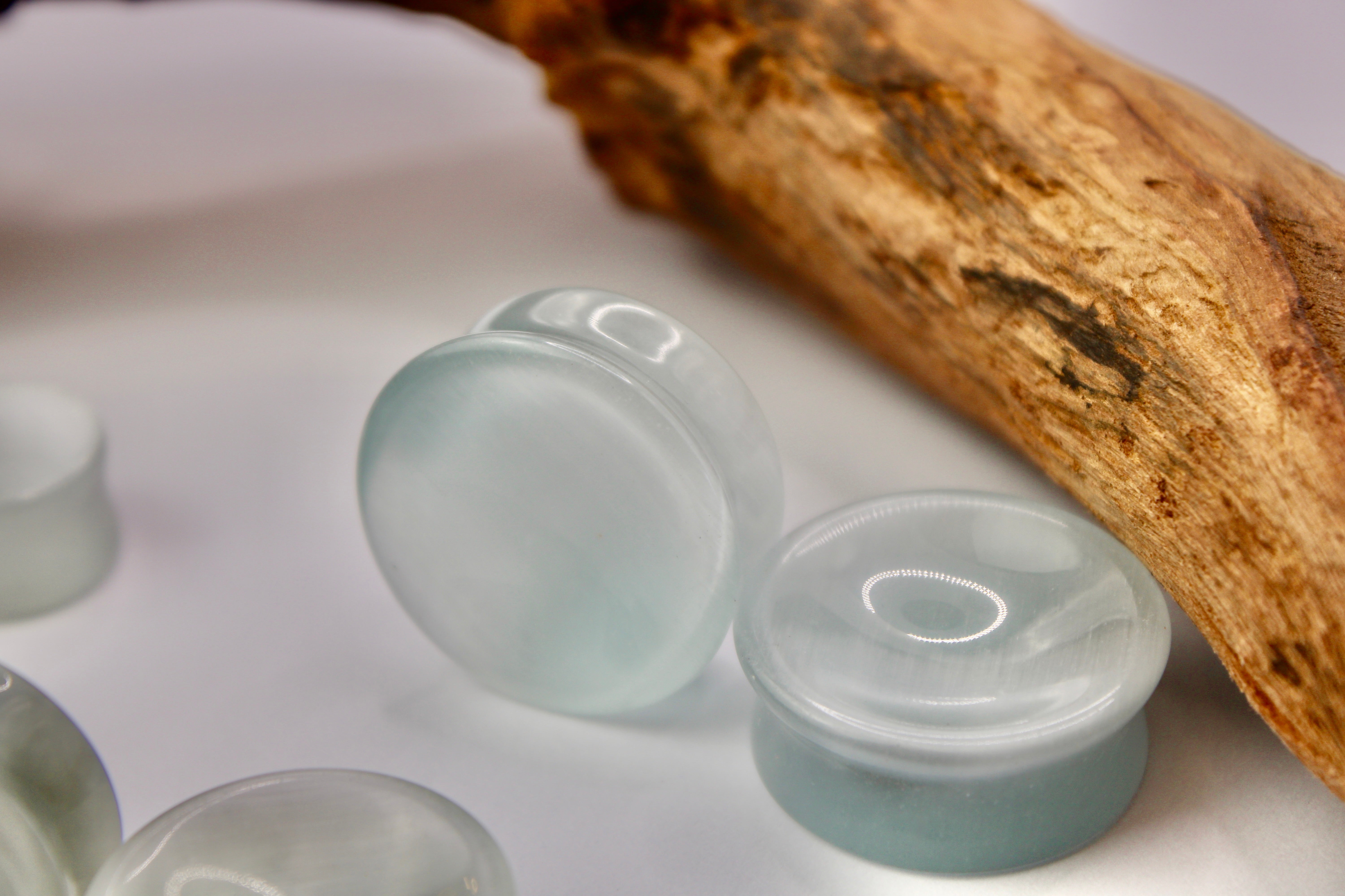 Silver Cat's Eye Glass Plugs Double Flare Pair 4mm-41mm