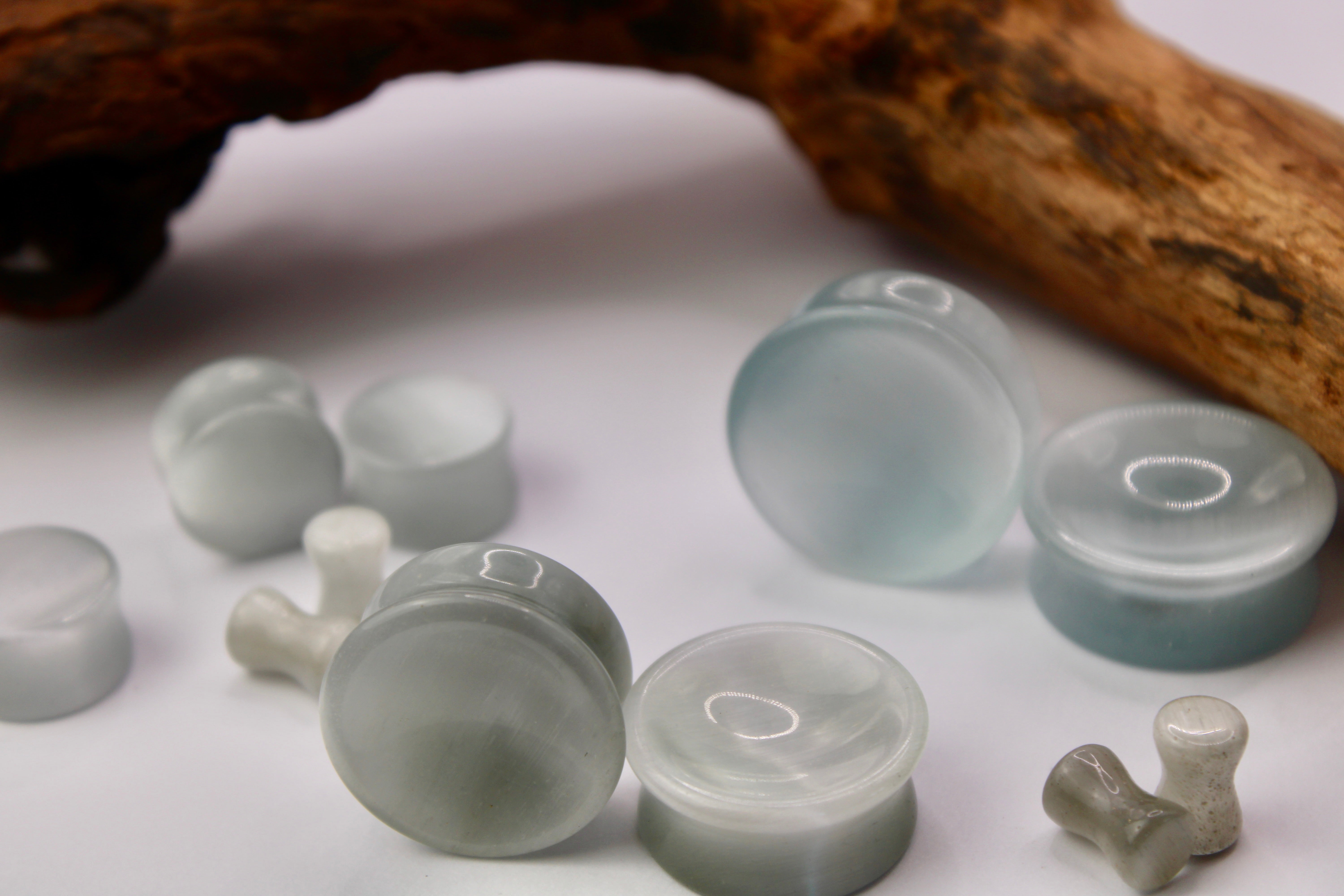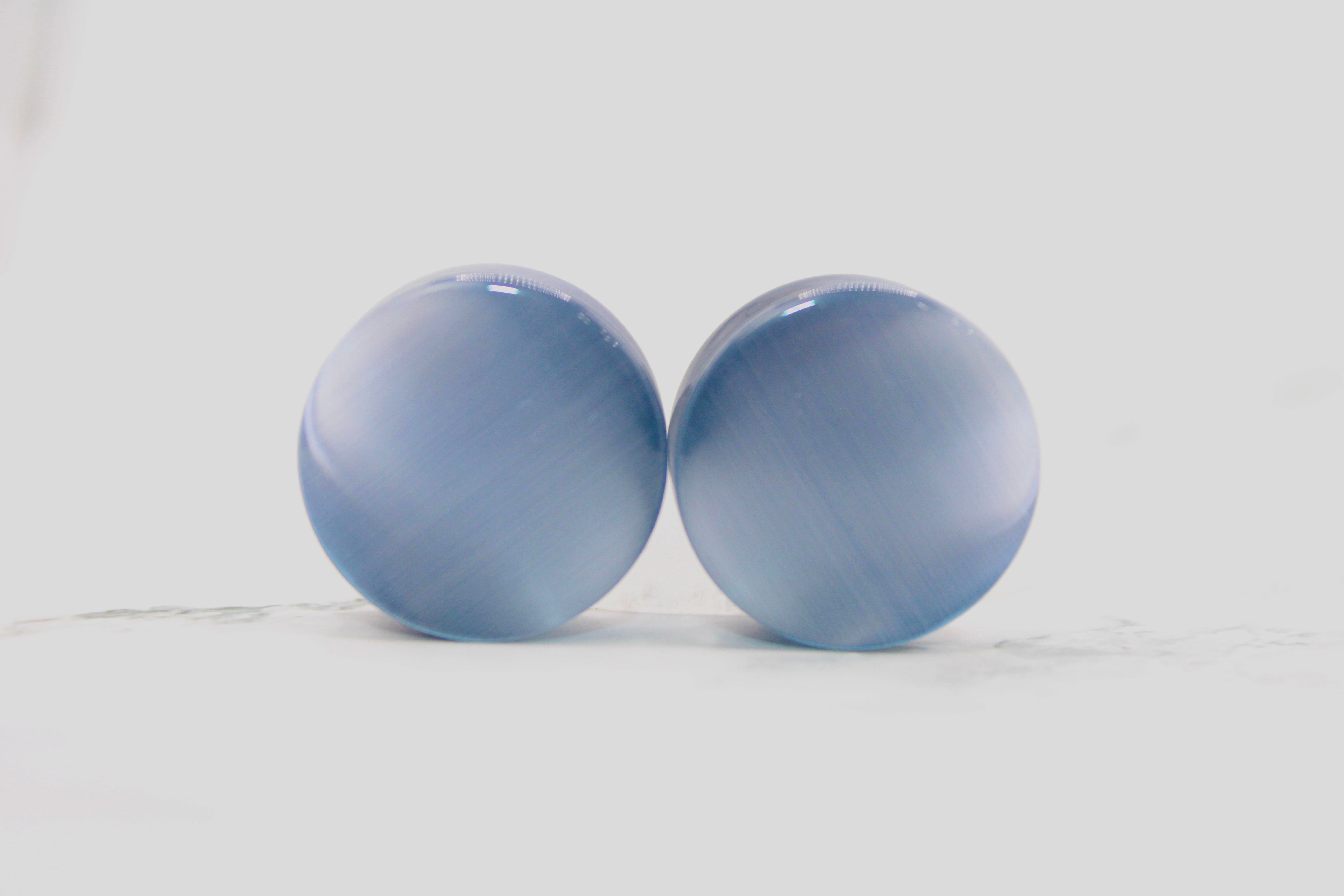 Silver Cat's Eye Glass Plugs Double Flare Pair Material: Silver Cat’s Eye GlassColor: Silvery gray with a glowing, reflective cat-eye... Read more