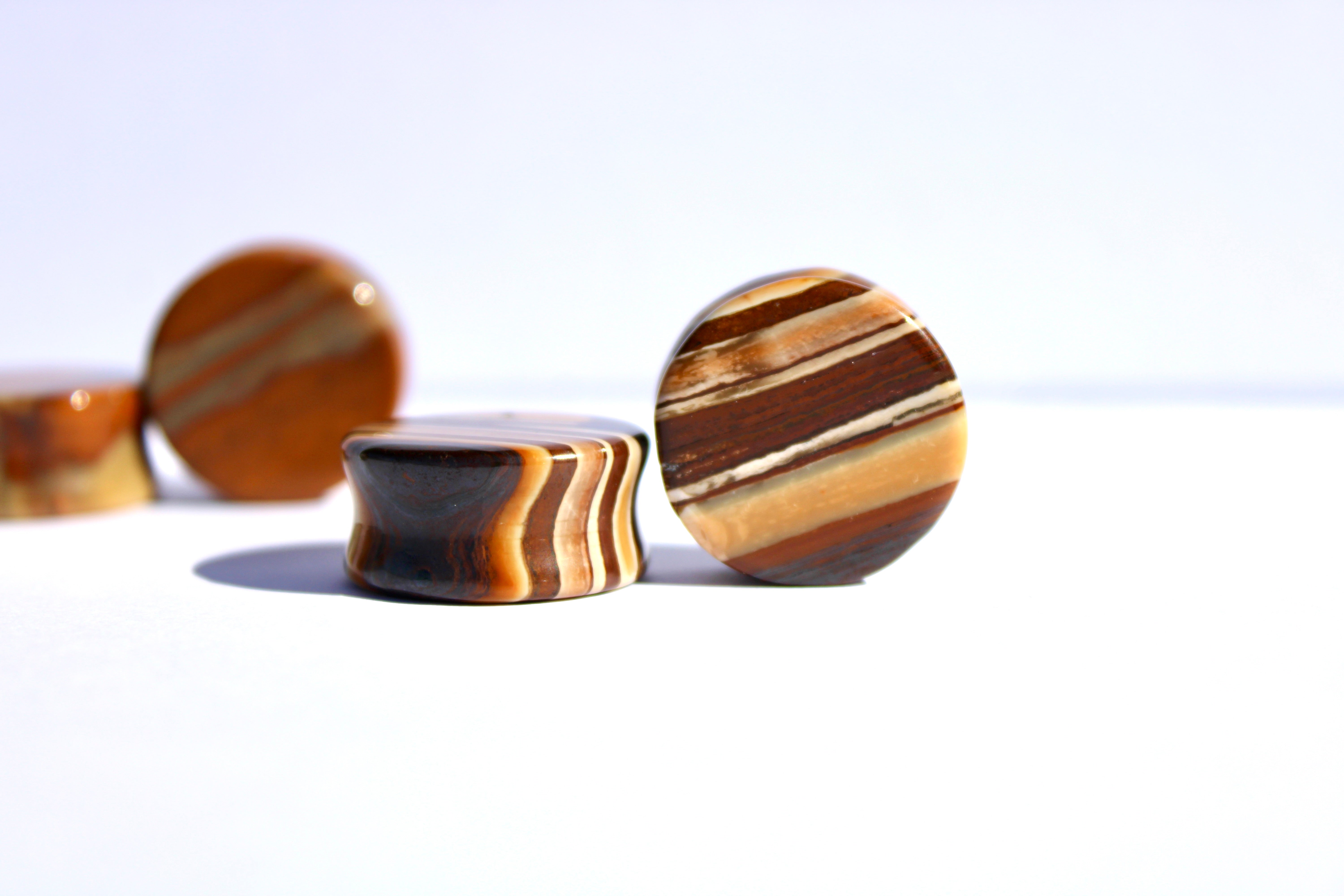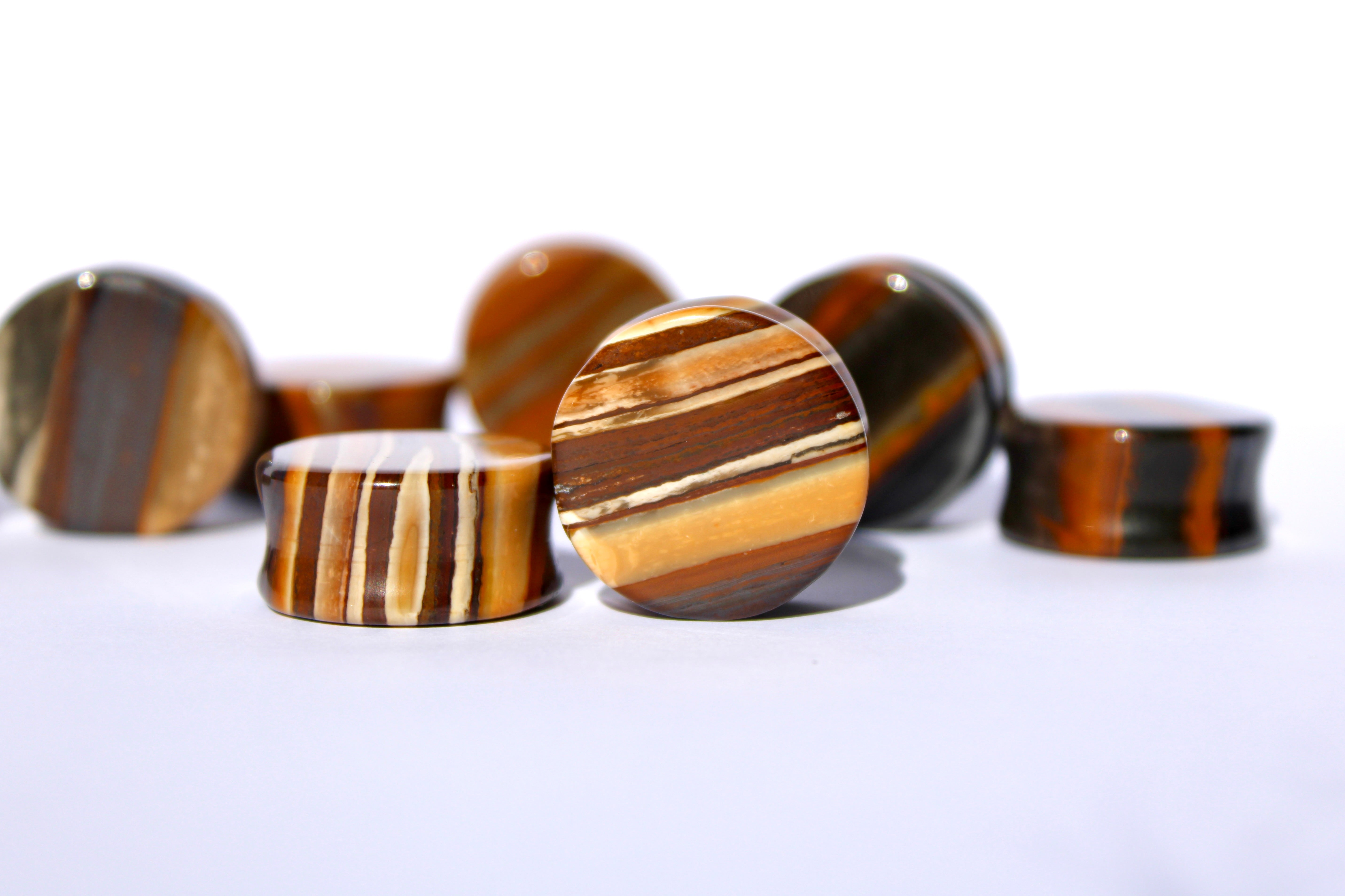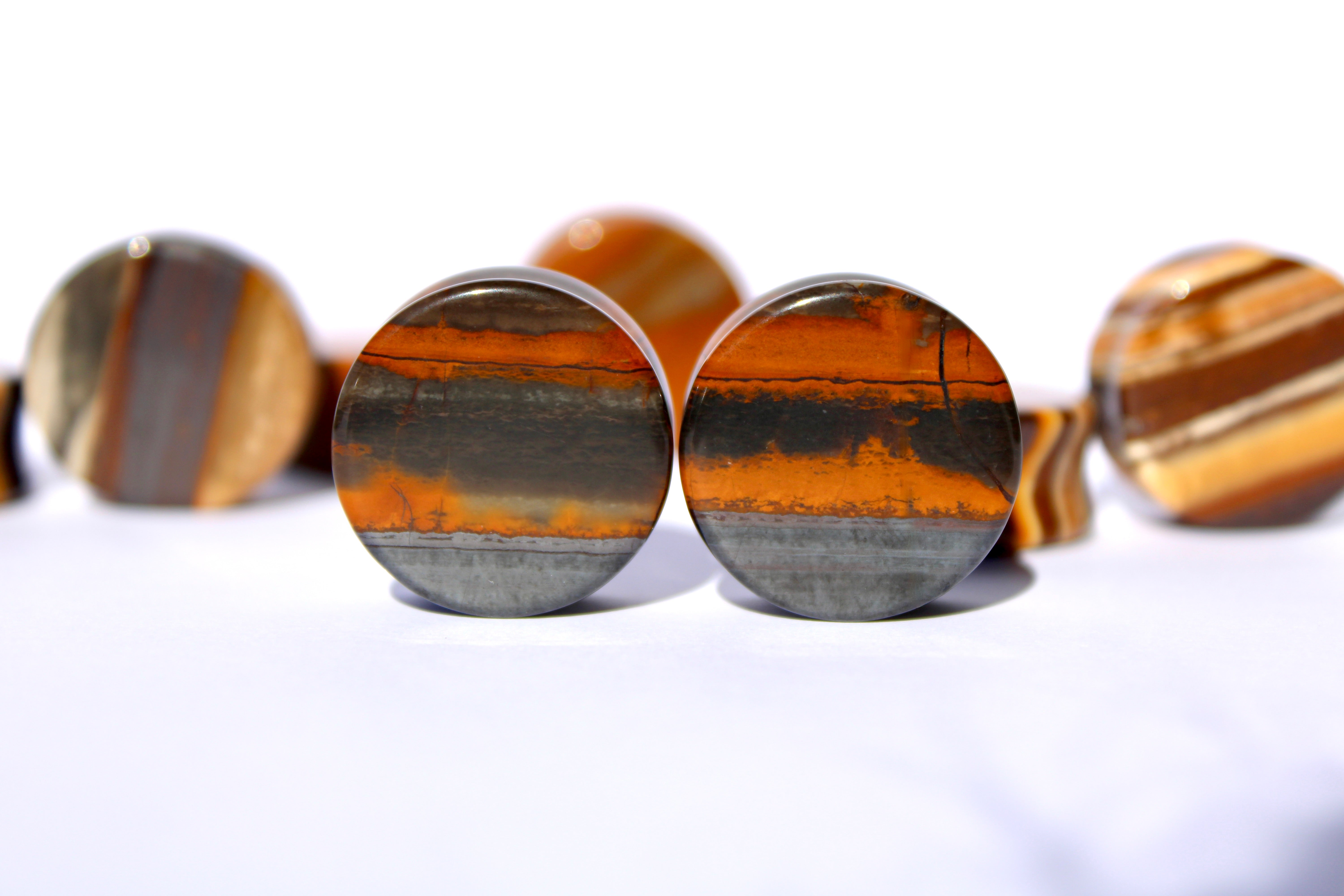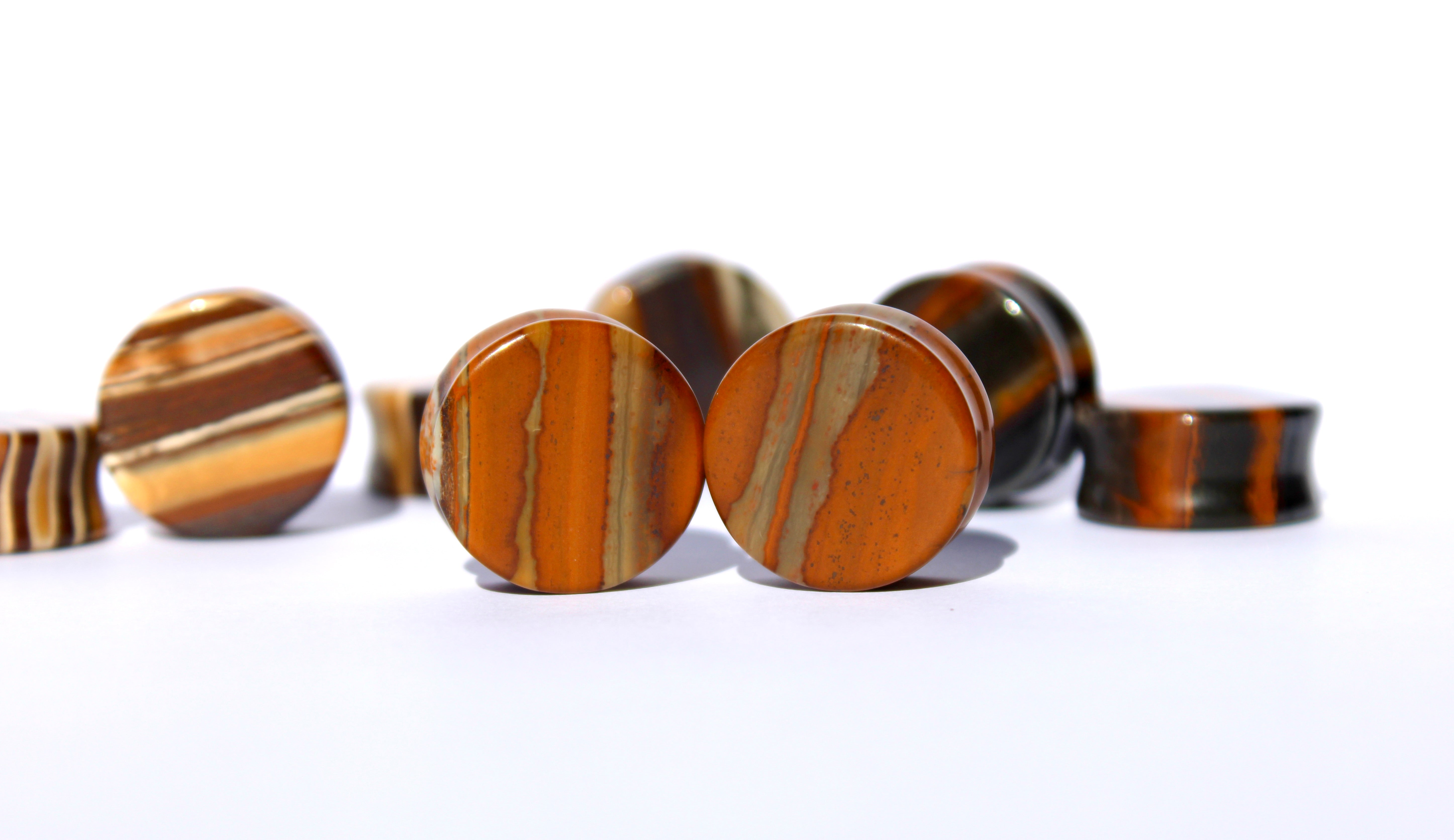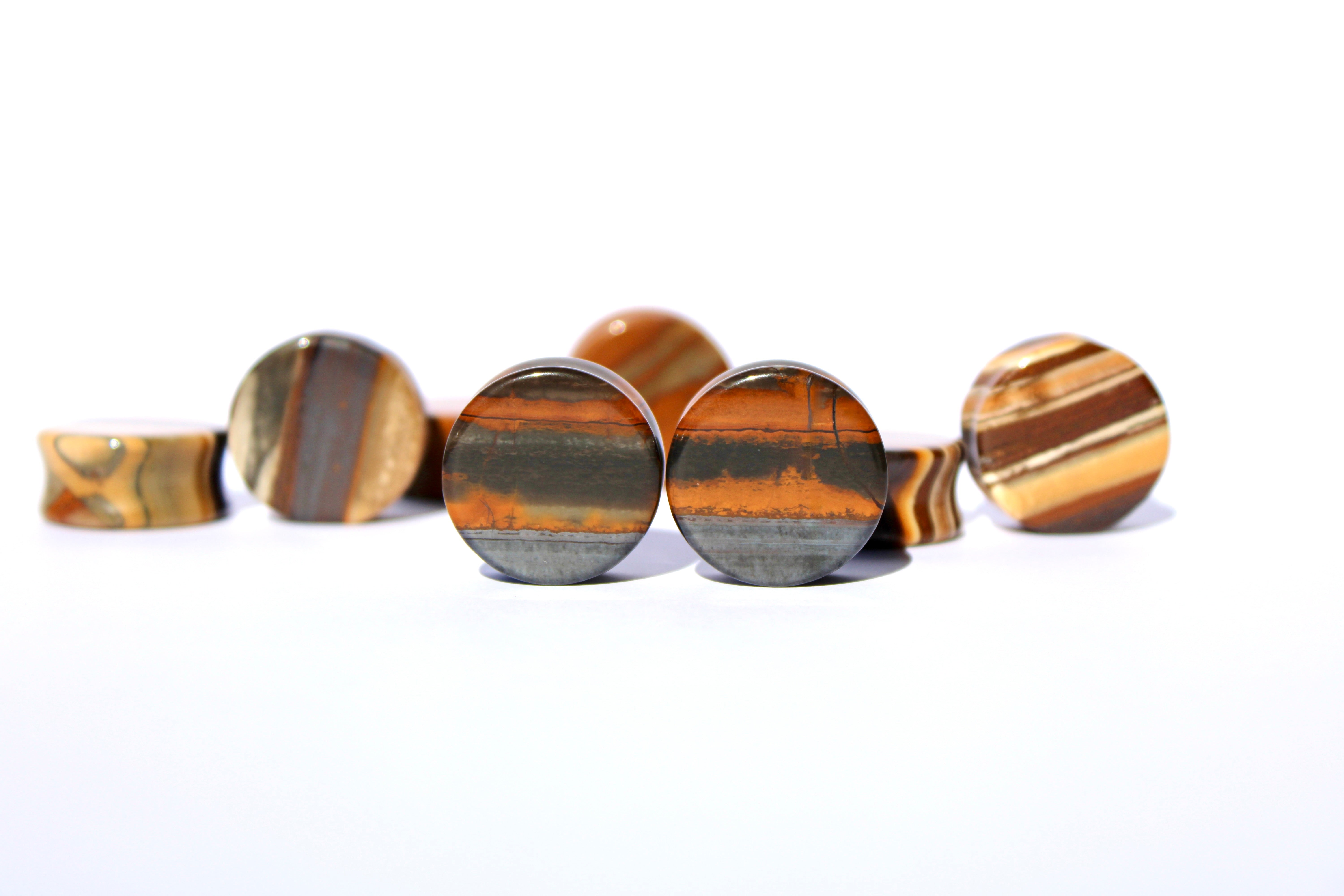 Sunset Jasper Double Flare Stone Plugs Hematite and Brown Banded Pair of Gauges 4mm-25mm