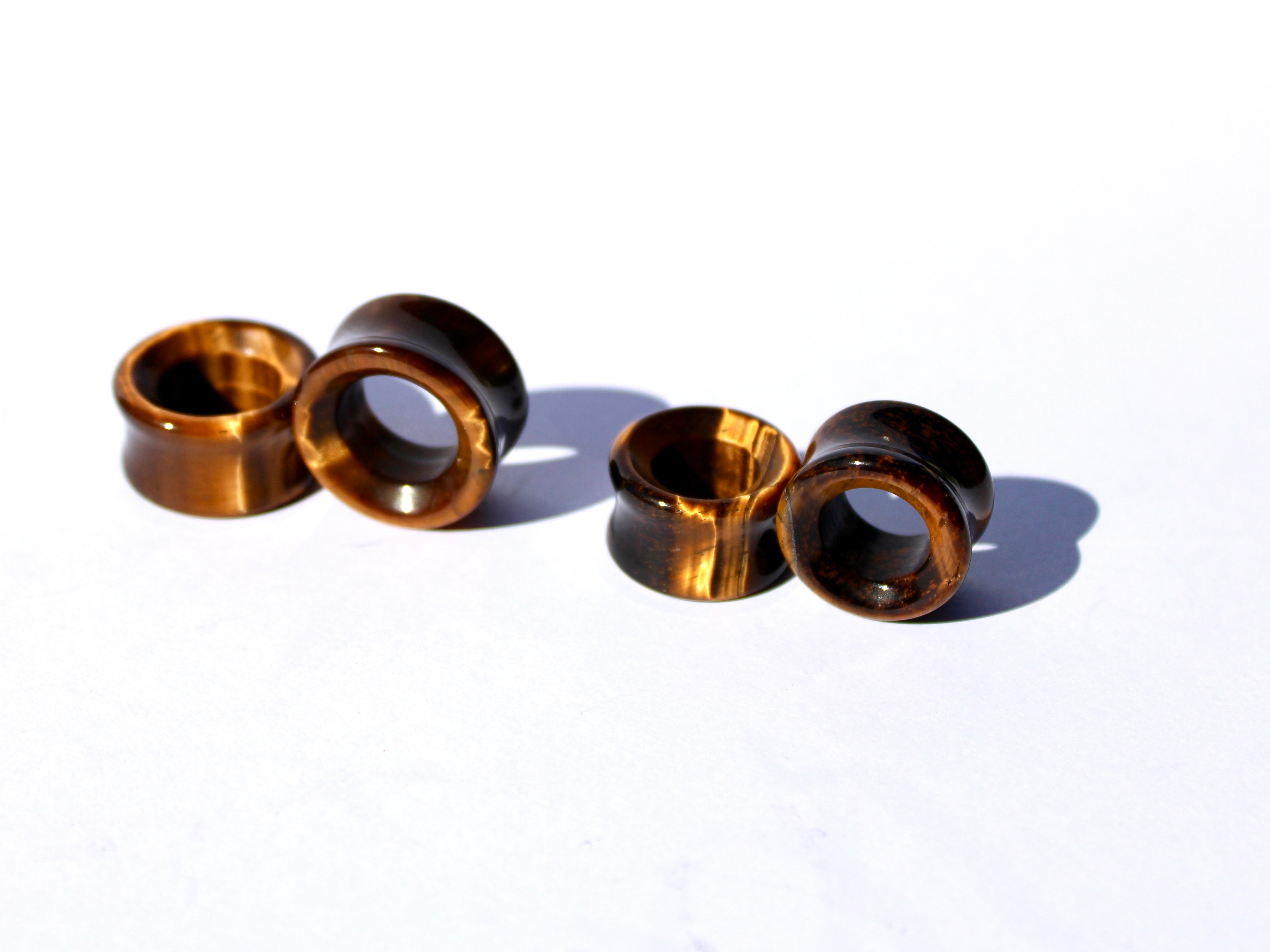 Tiger Eye Tunnel Plugs – Double Flare Stone Gauges (Pair) 6mm-28mm