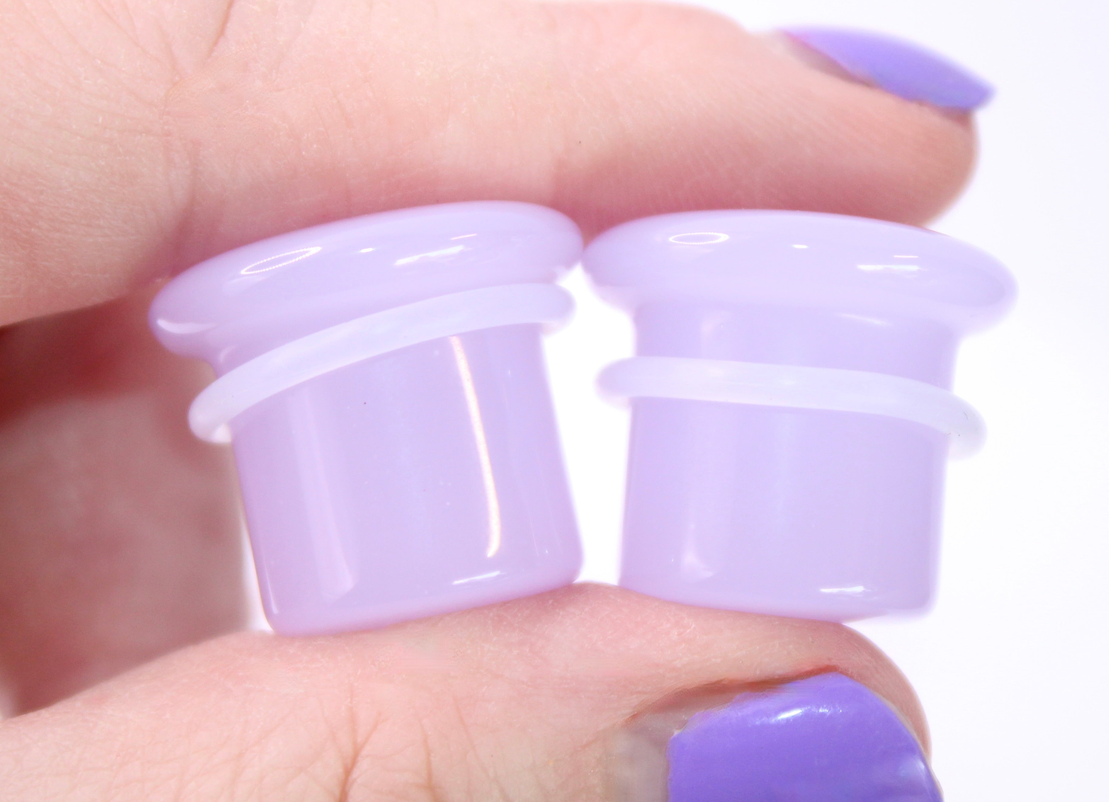 Violet Opalite Plugs – Single Flare Crystal Gauges with O-Rings (Pair), Lavender Glassy Look Material: Violet Opalite GlassColor: Soft lavender... Read more